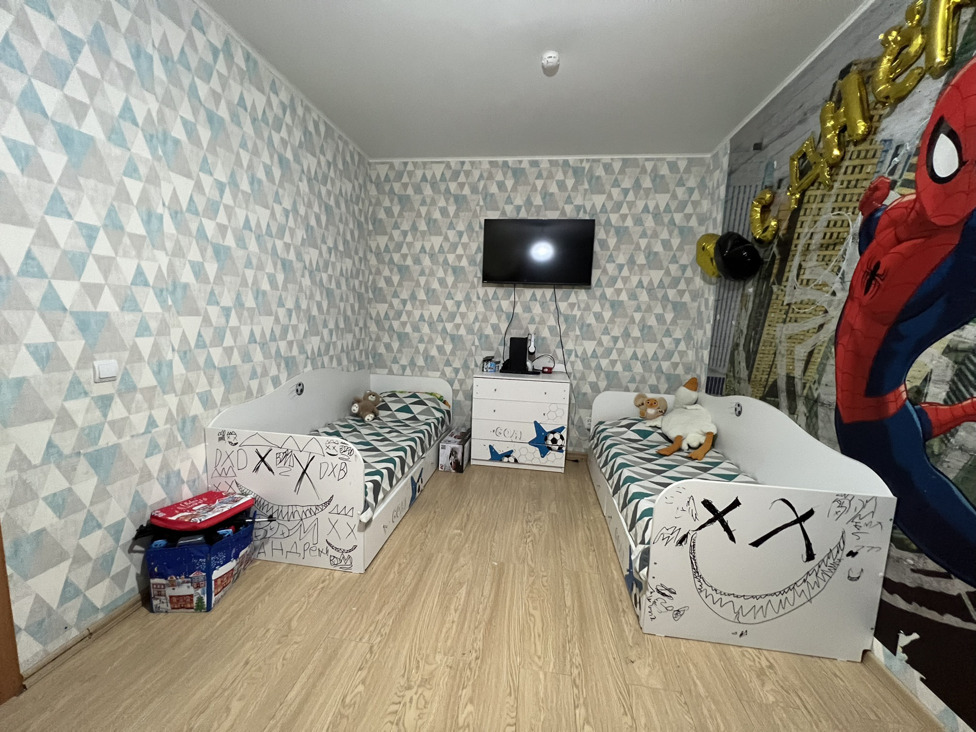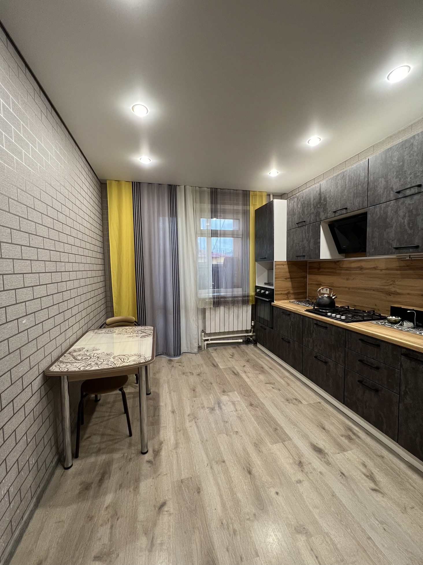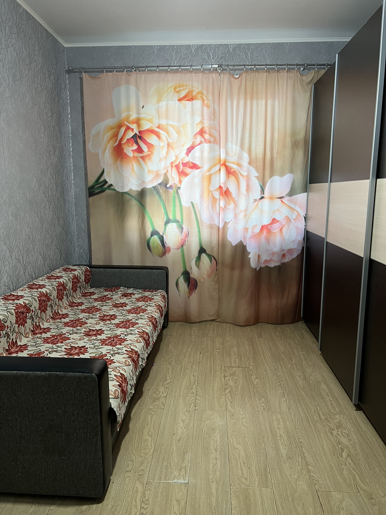 Квартира просторная, имеется гардеробная, балкон, 2 комнаты, кладовое помещение, кухня, душ и санузел