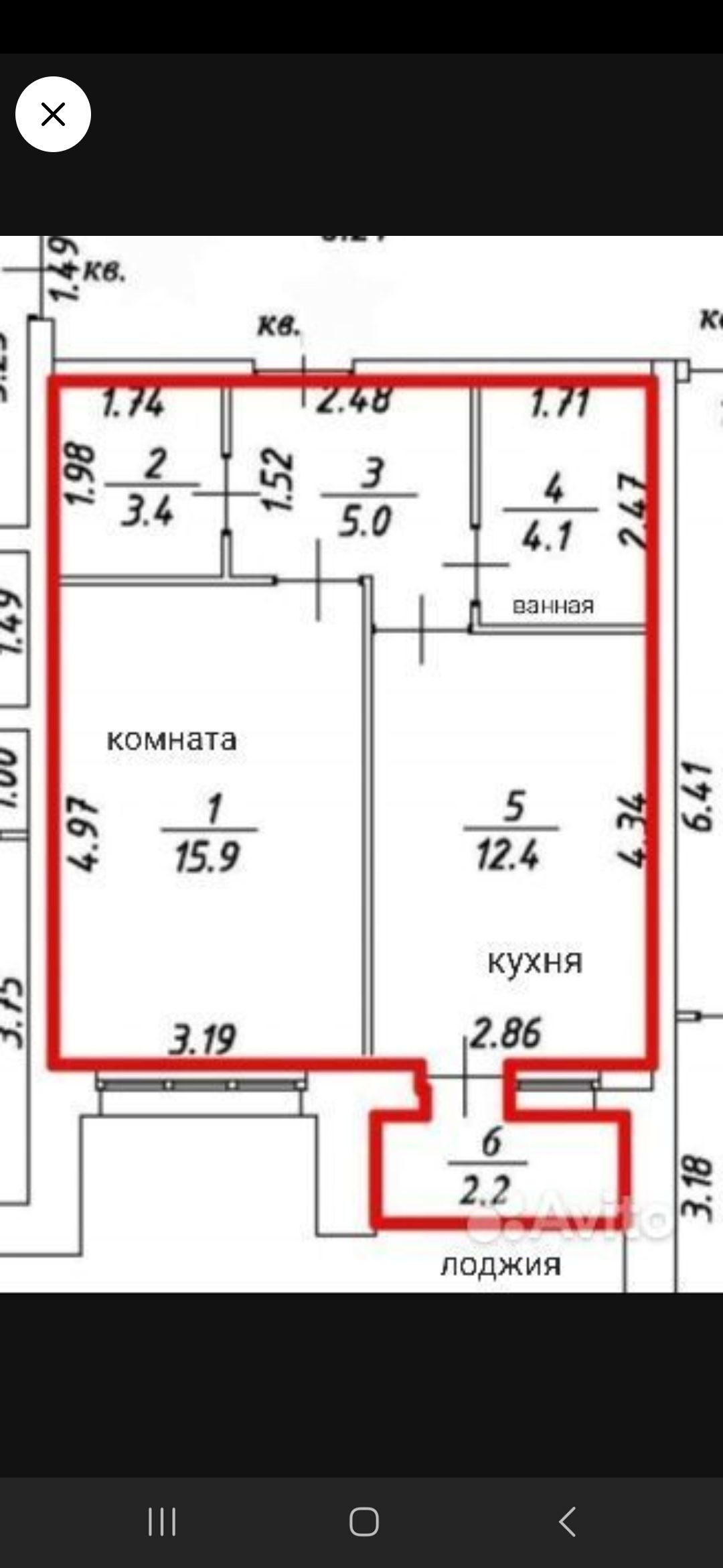 Общая площадь 40.8 м2
