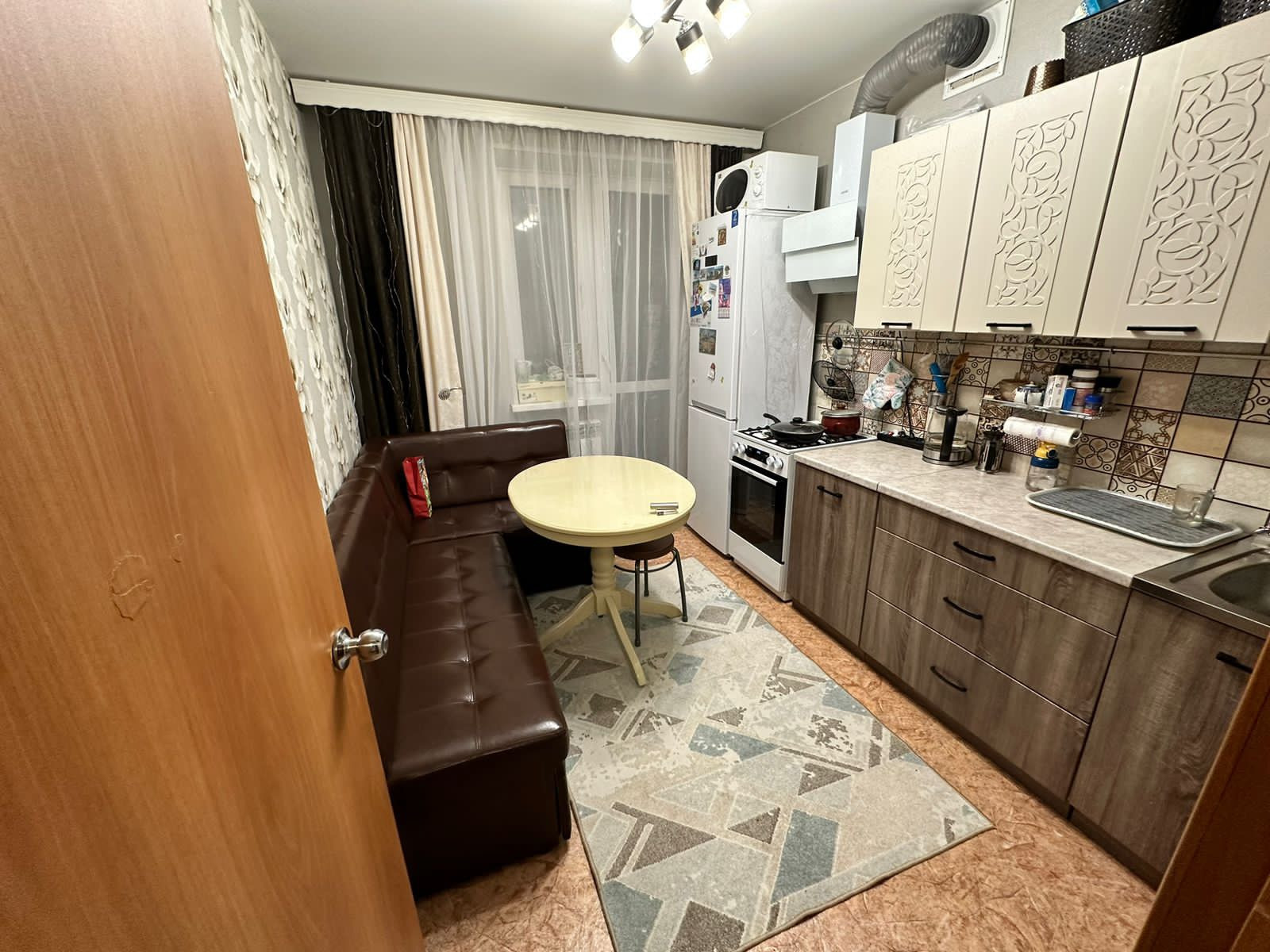- Вместительная кухня с выходом на очень просторный балкон, где можно хранить различные вещи.
