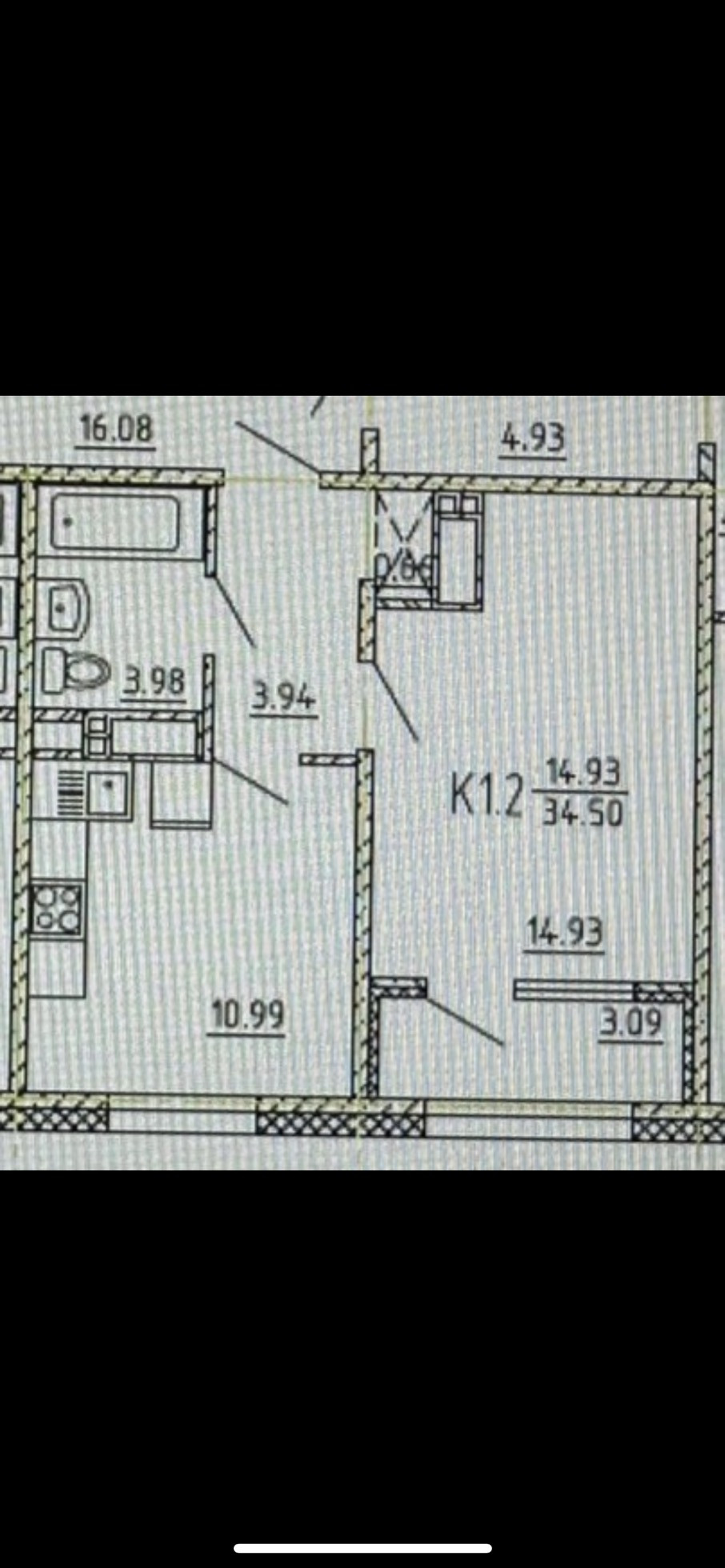 Общая площадь 34.5 м2