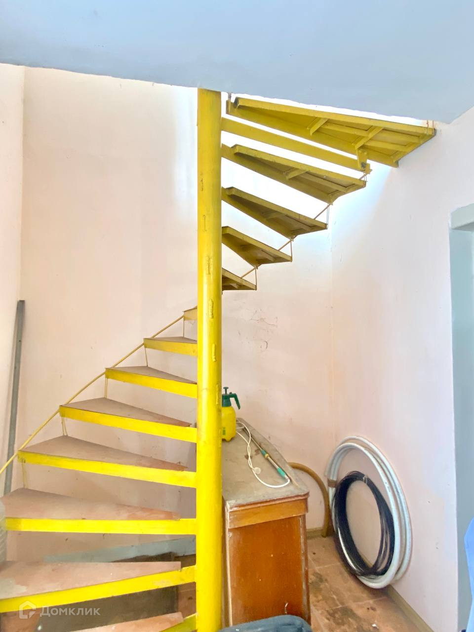 2-ом этаже,  металлическая лестница на 2-ой этаж. Дом строили для себя, на совесть.