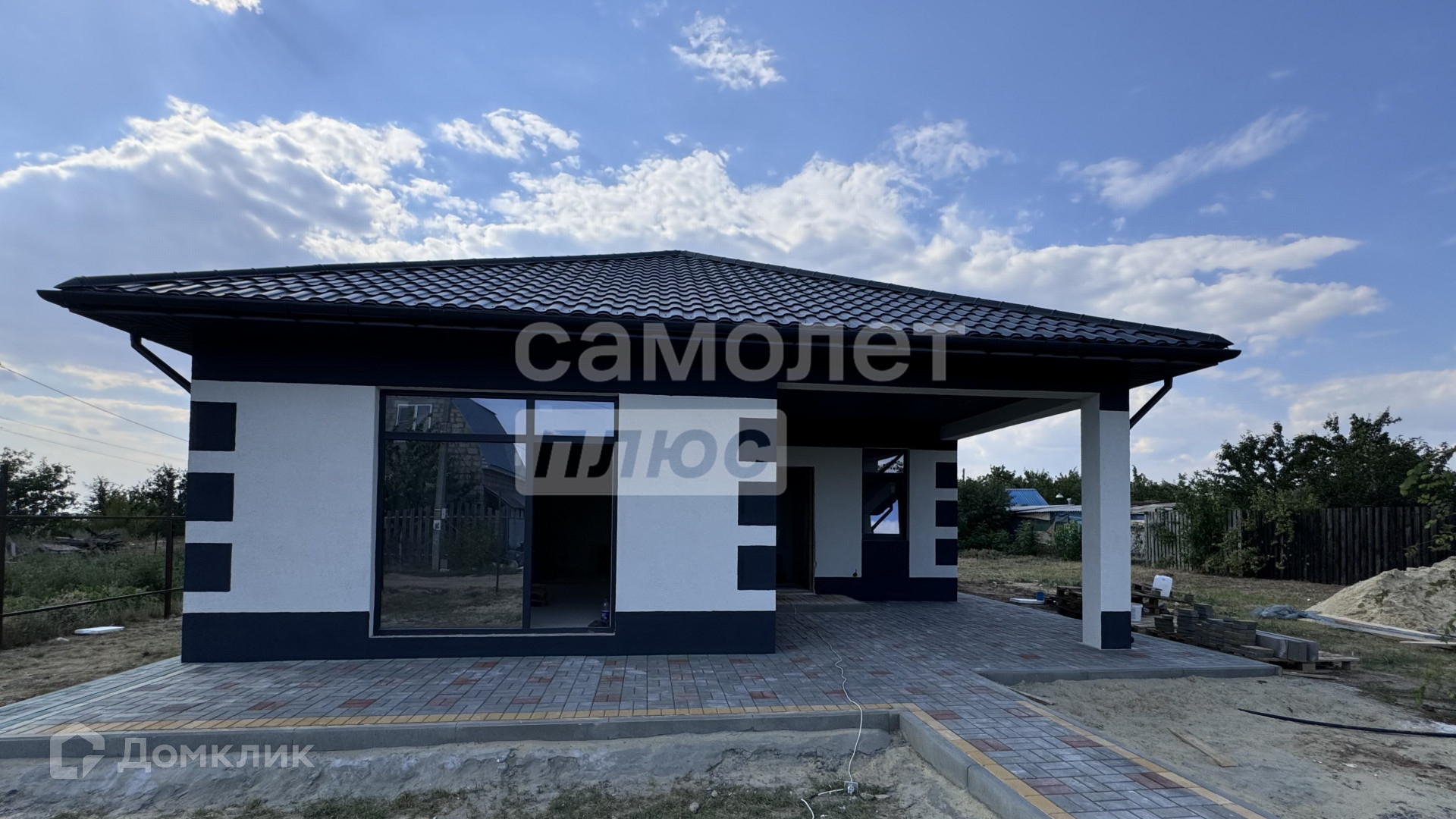 Стены выполнeны из кepaмзитo-бетонного блoка + кaчeствeнный утeплитeль 100 кв.м + вeнт.зазор + фасадная штукатурка, крыша - металлочерепица и дополнительно утеплена.