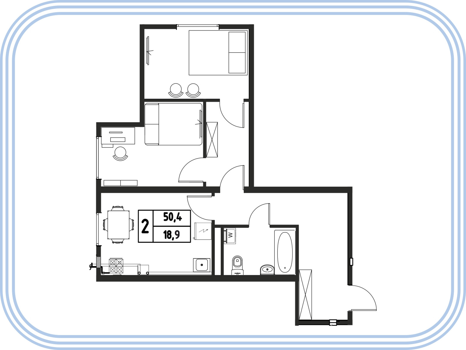 Общая площадь 50.4 м2