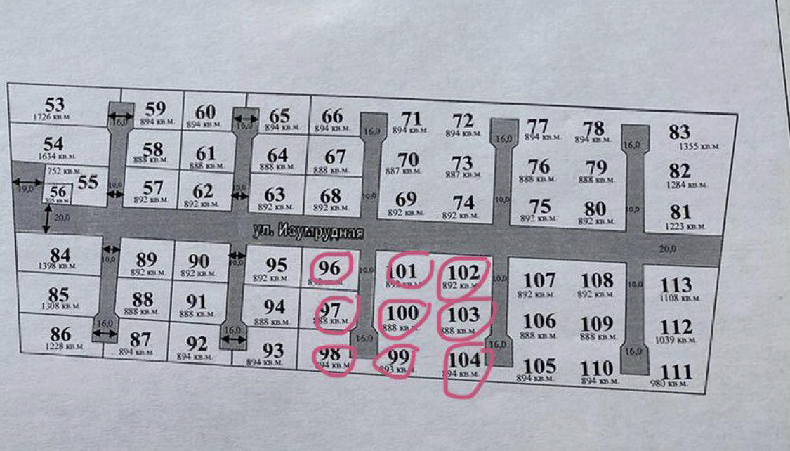ул Изумрудная, 5,25,28,30,31,32,33,34,36,37,38,39,40,41,45,46,47,48,49,96,97,98,99,100,101,102,103,104.