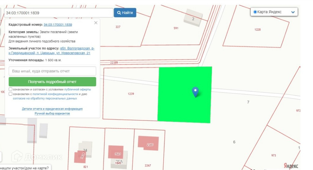 Кадастровый номер – 34:03:170001:1839.