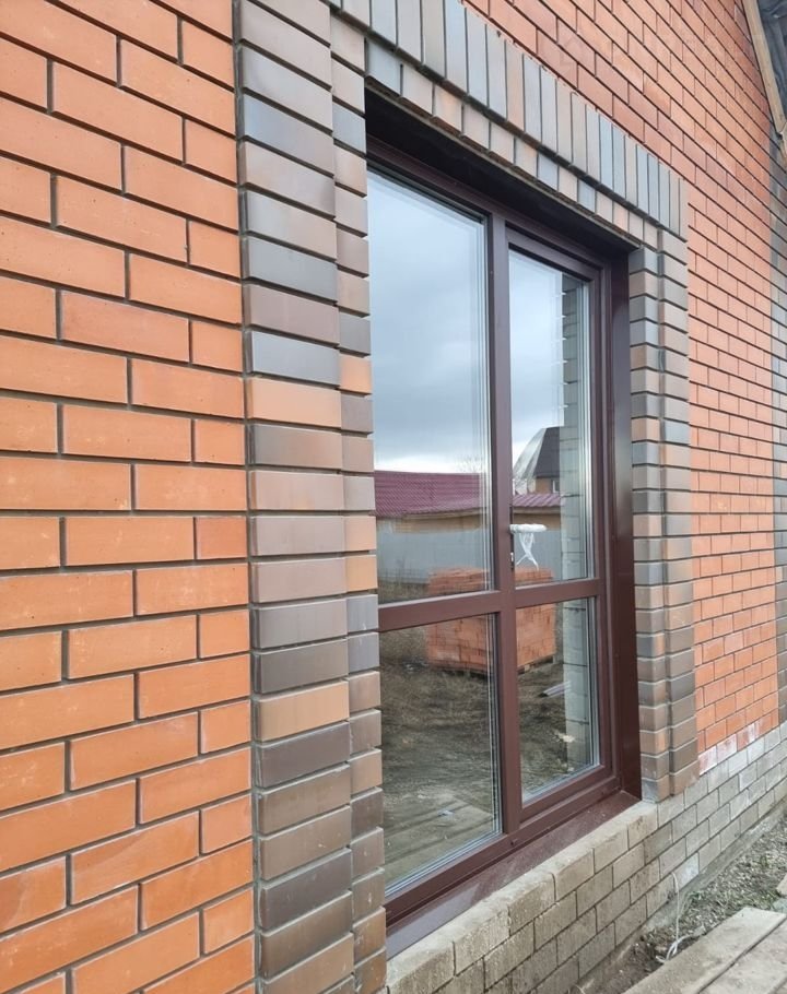 По углам и вокруг окон распушка из флэш кирпича.