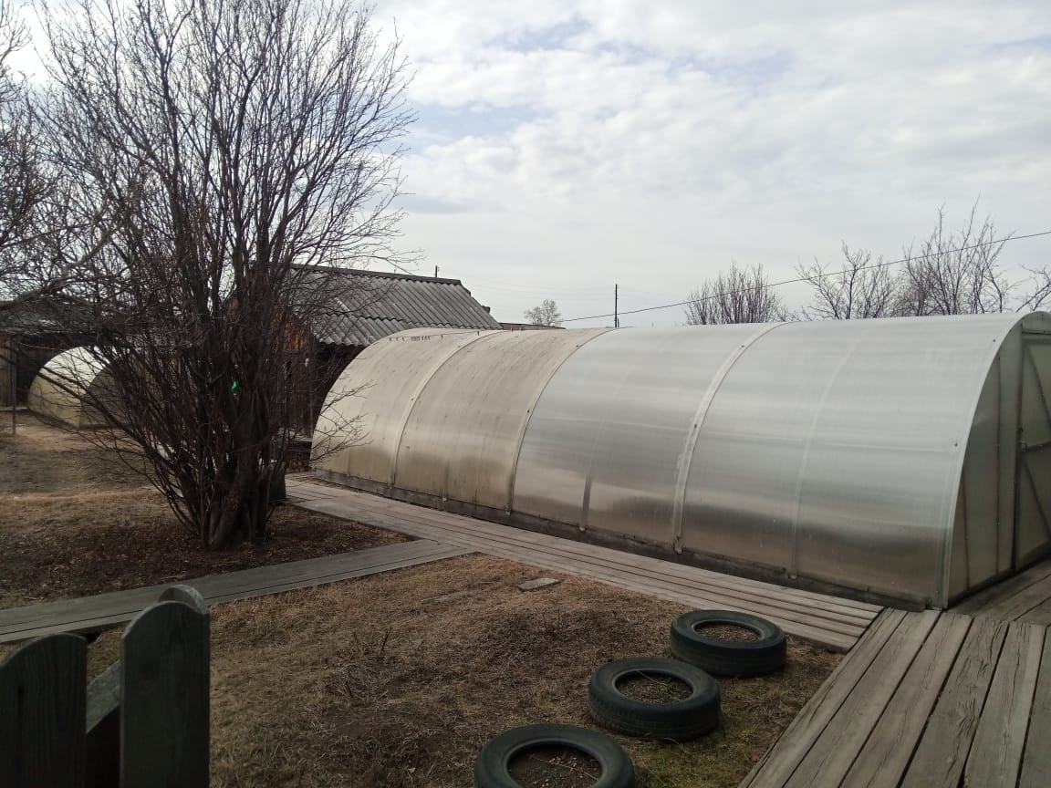 На участке две теплицы из поликарбоната, размером 6 и 8м, двор застелен доской, участок чистый ухоженный.