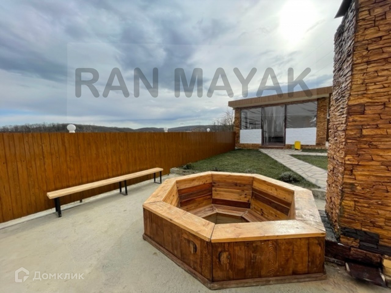 На территории парилка банный чан с подогревом беседка.
