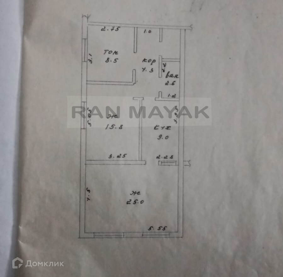Жилая площадь 49.8 м2