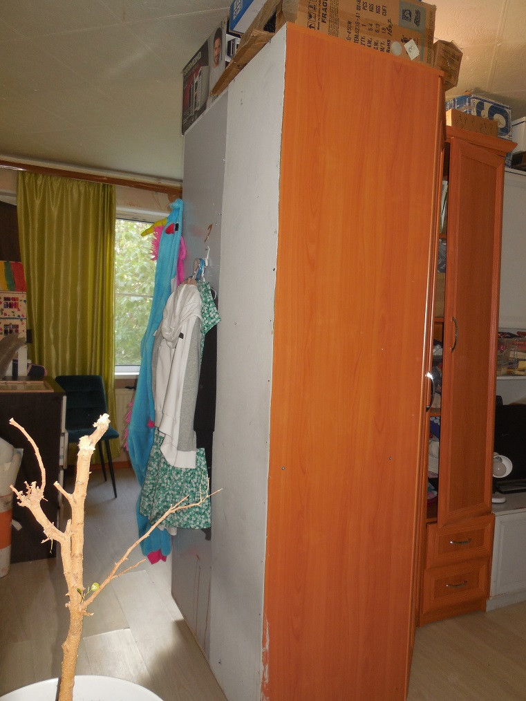 Комната перегорожена на 2 части.