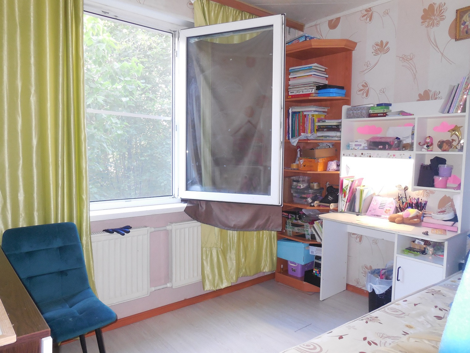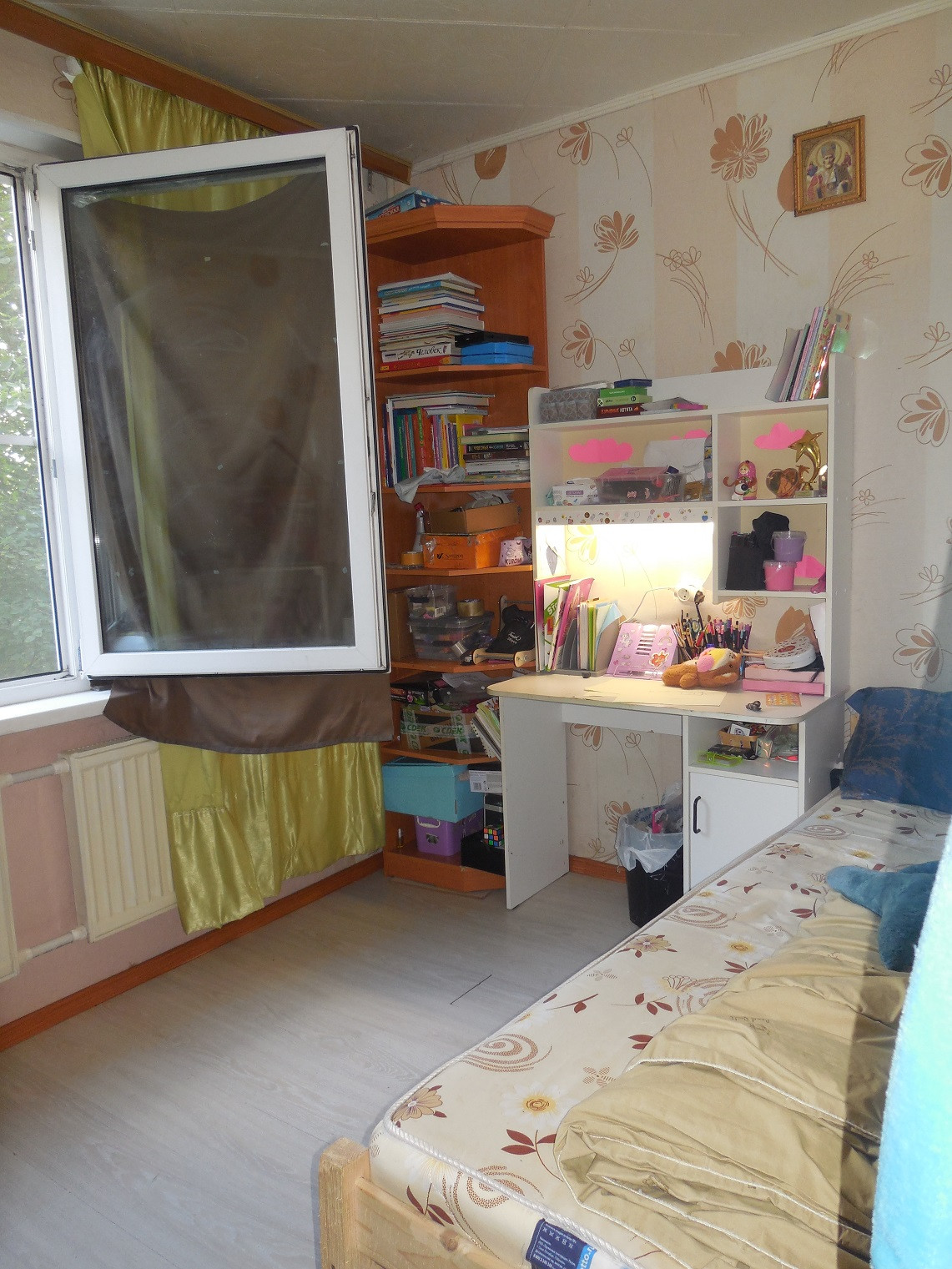 В комнате и на кухне окна заменены на стеклопакеты, установлены новые радиаторы центрального отопления.