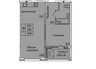 Общая площадь: 40.9 м2