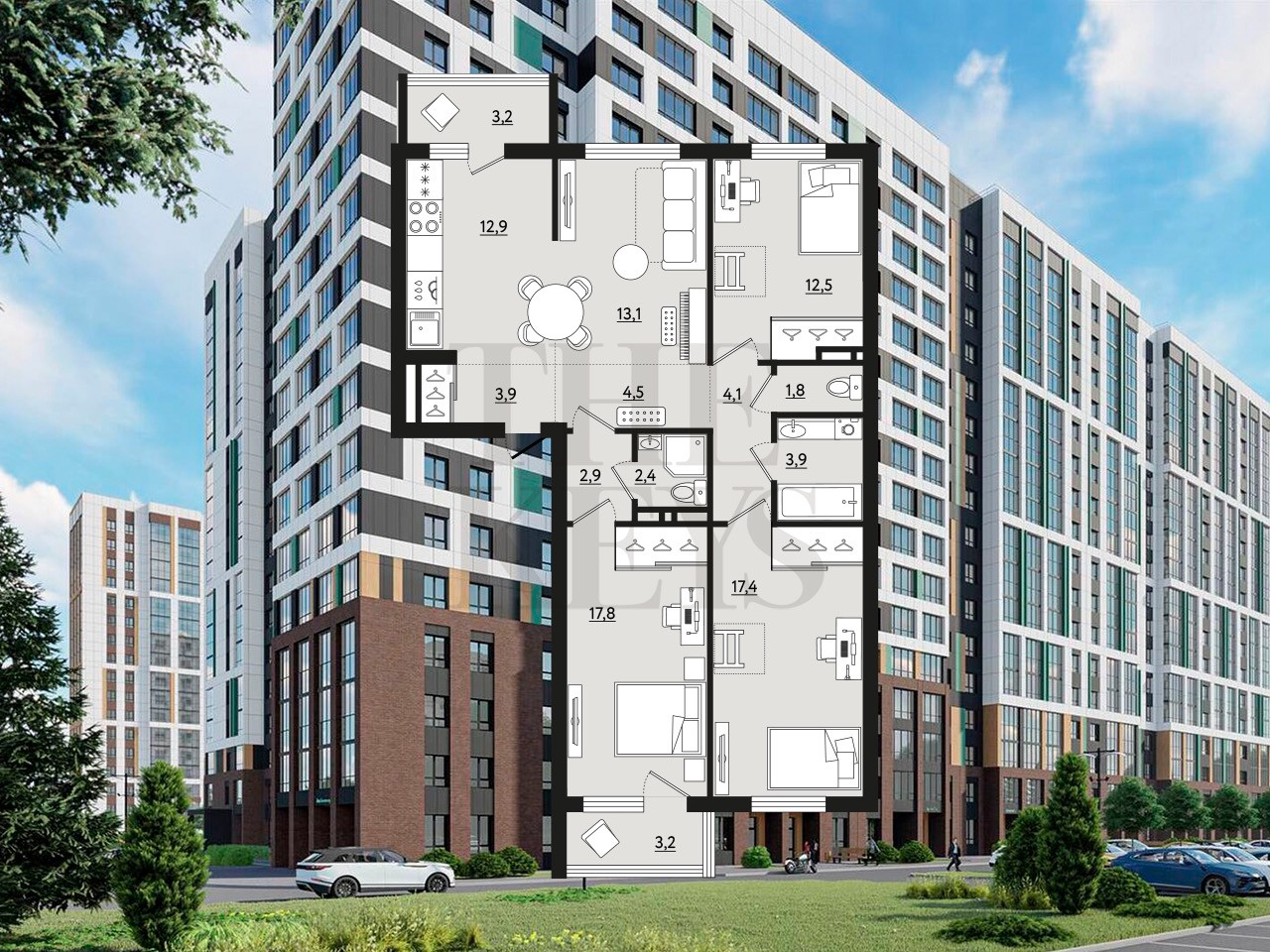 4-комнатная квартира, 100.4 м2, этаж 14 / 17, на продажу в посёлке Тельмана, Квартальная улица, 2