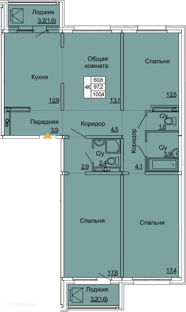 Общая площадь 100 м2