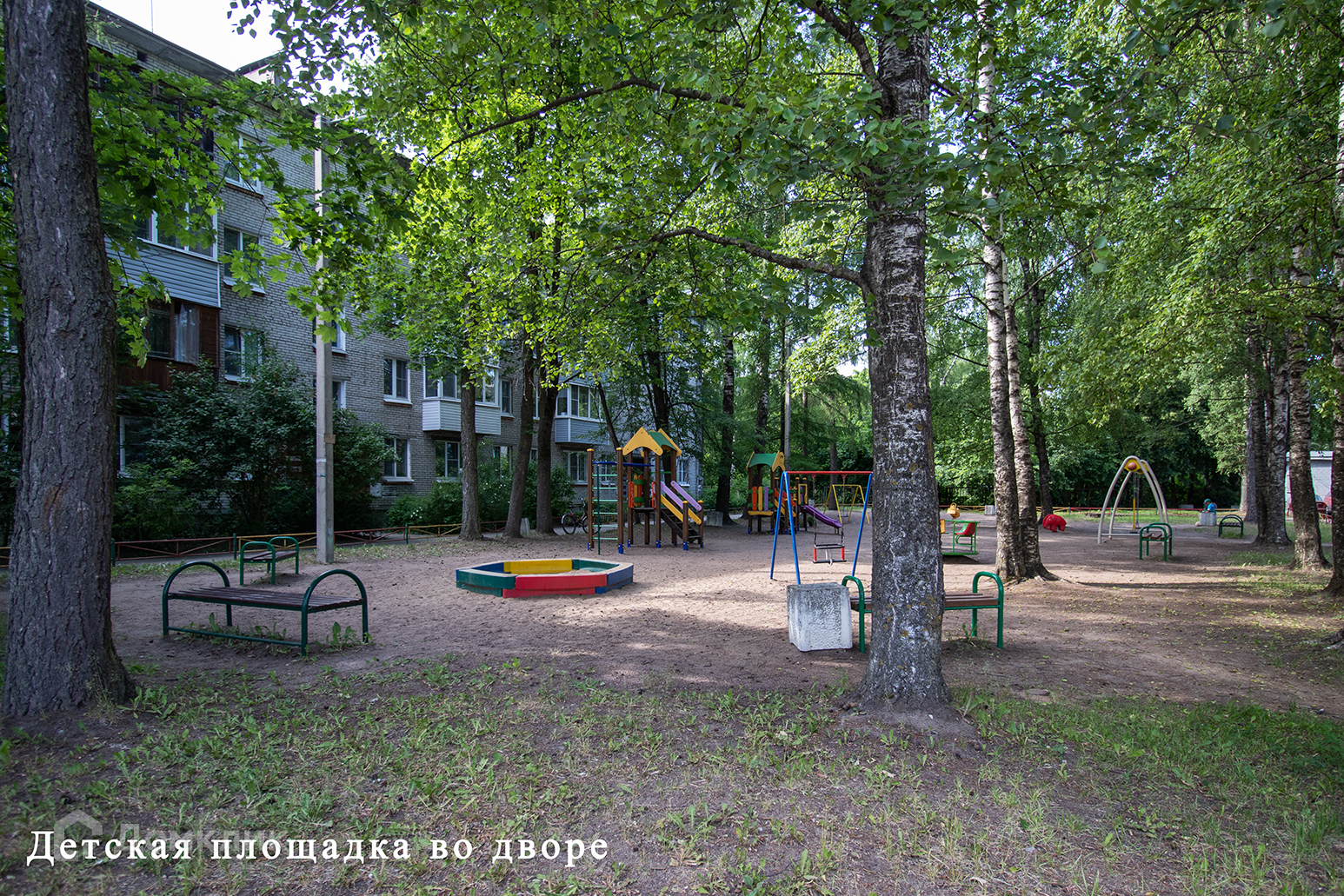 В доме установлен домофон, подъезд чистый, двор с детской площадкой.