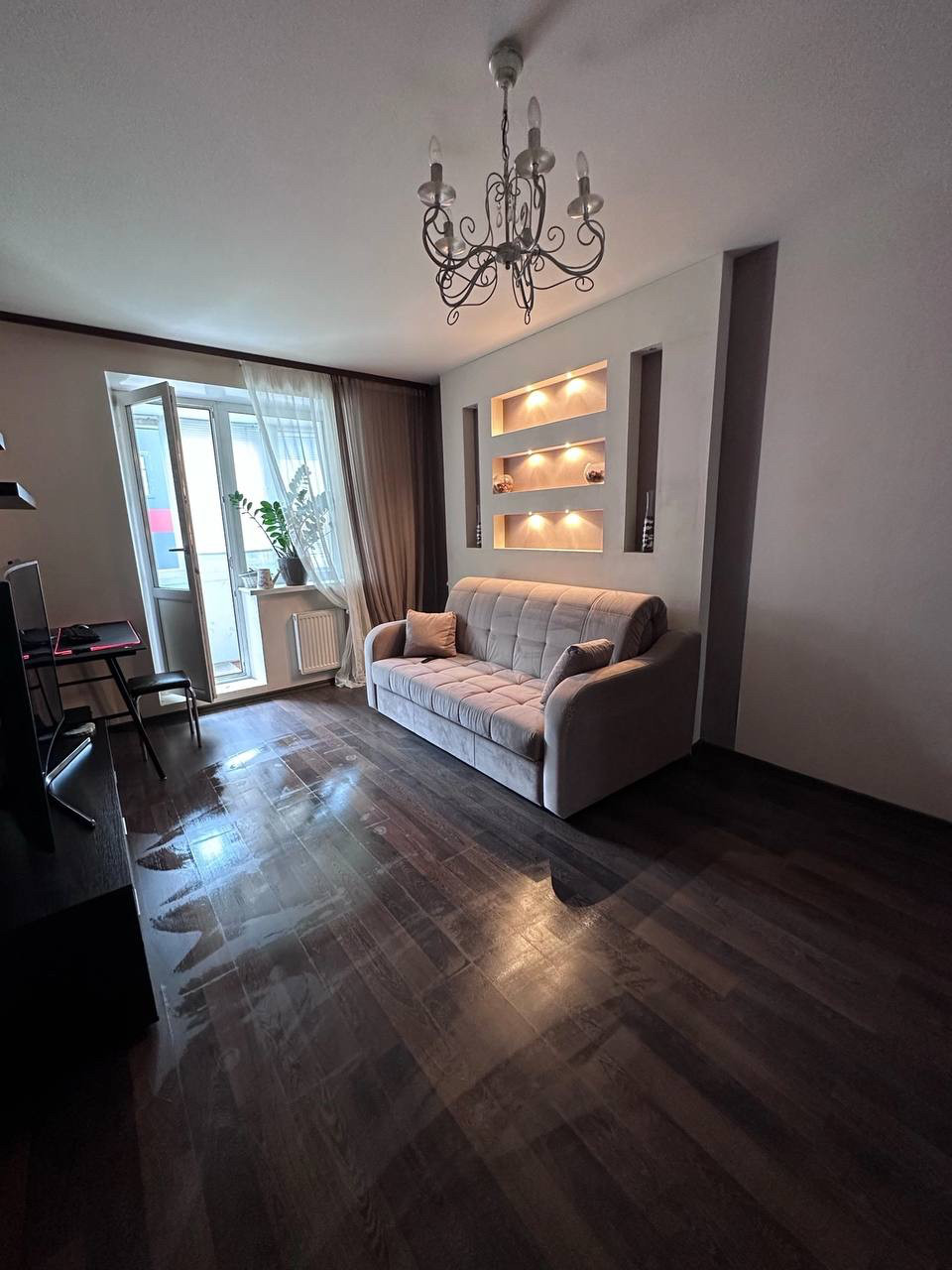 -покупателю остается вся мебель (кухонный гарнитур, стулья, стол, тумба под телевизор, диван, шкаф-купе, комод в прихожей, кухонная техника: индукционная плита, холодильник, духовой шкаф)