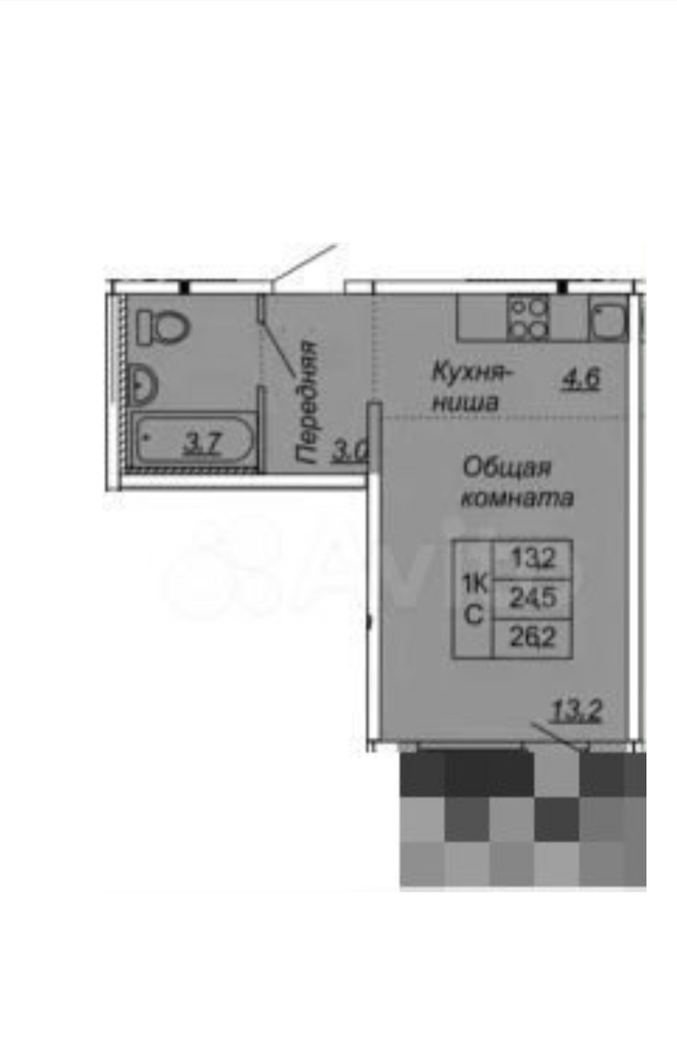Общая площадь 27 м2