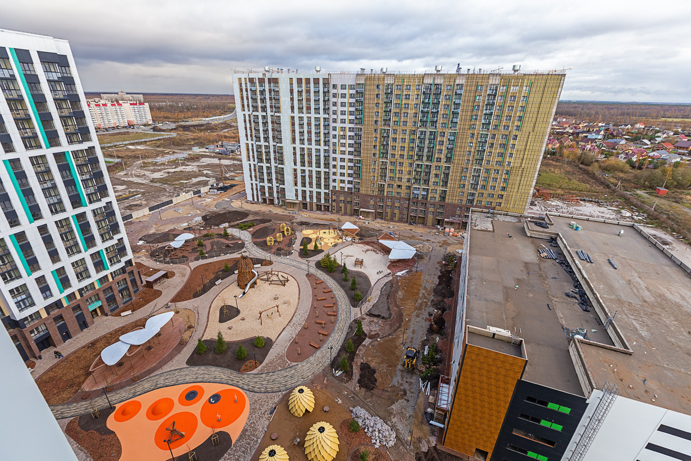 - Во дворах установлены малые архитектурные формы, детские площадки и места для отдыха