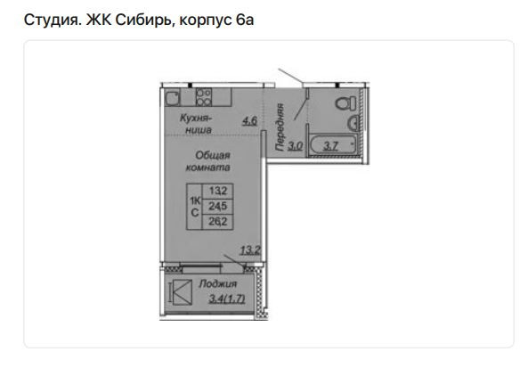 Kваpтиpa-cтудия c предчистoвой отделкoй в ЖК "Cибиpь"!
