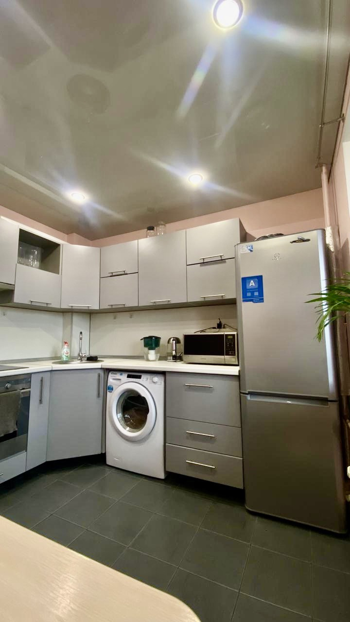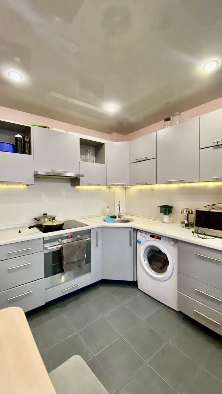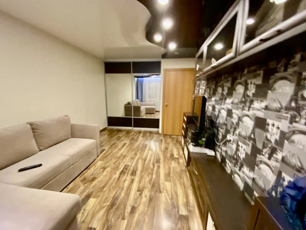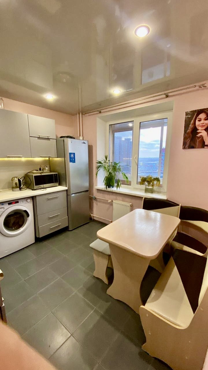 Квартира в хорошем состоянии, натяжной весь потолки в комнате и на кухне, полы плитка в с/у и на кухне. Новым хозяевам остается вся мебель и бытовая техника в подарок, можно въехать и жить, а так же хороший вариант приобретения под аренду!