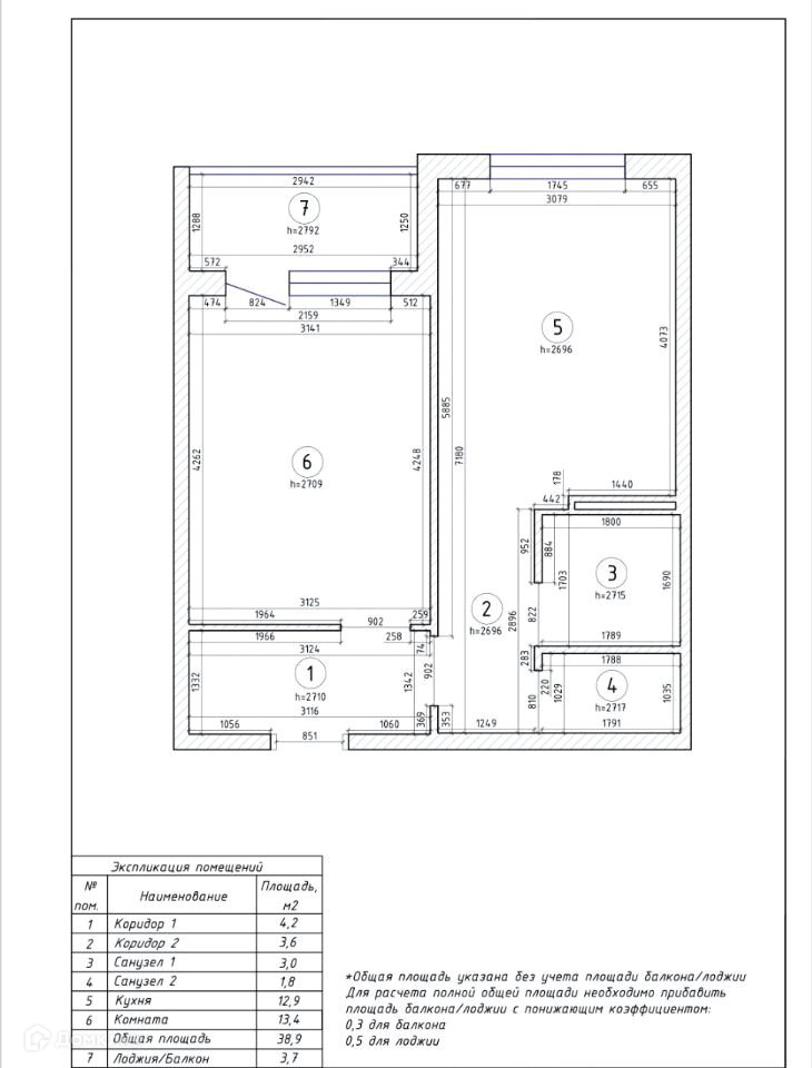 Высота потолков 2.7 м