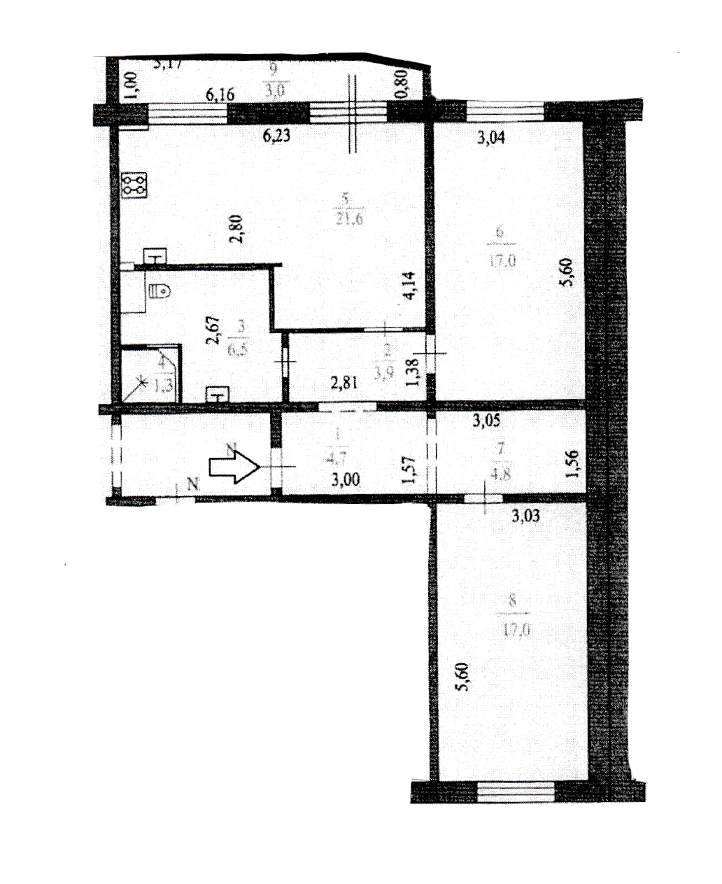 Площадь кухни 21.6 м2
