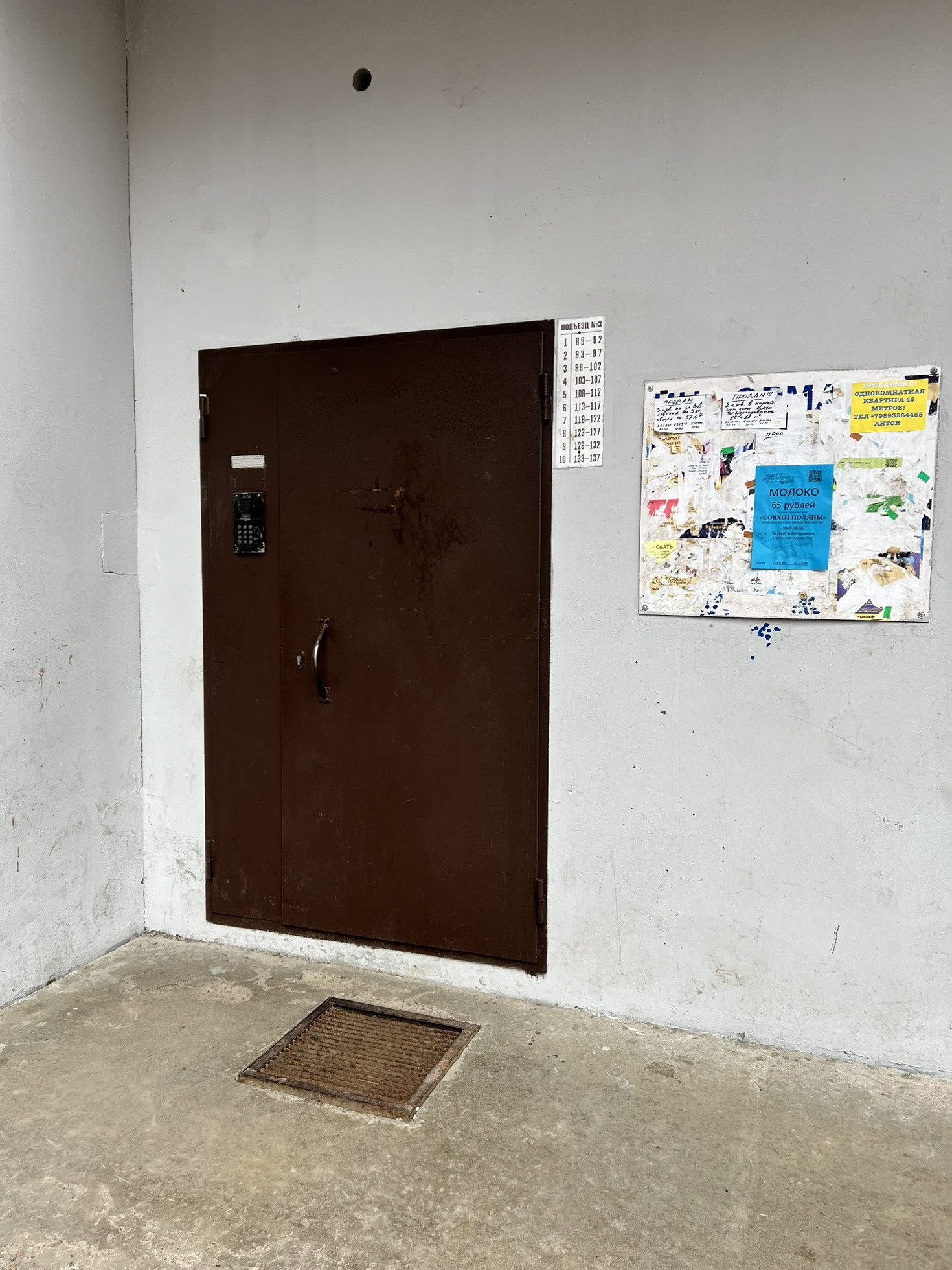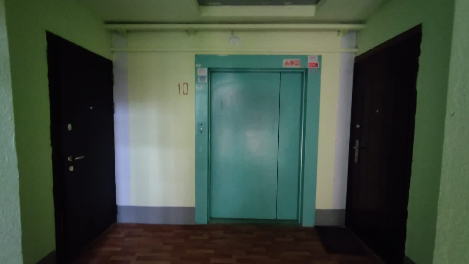 Вы выходите из лифта и открываете дверь в общий тамбур на 3 квартиры. Тут можно хранить, например велосипед.