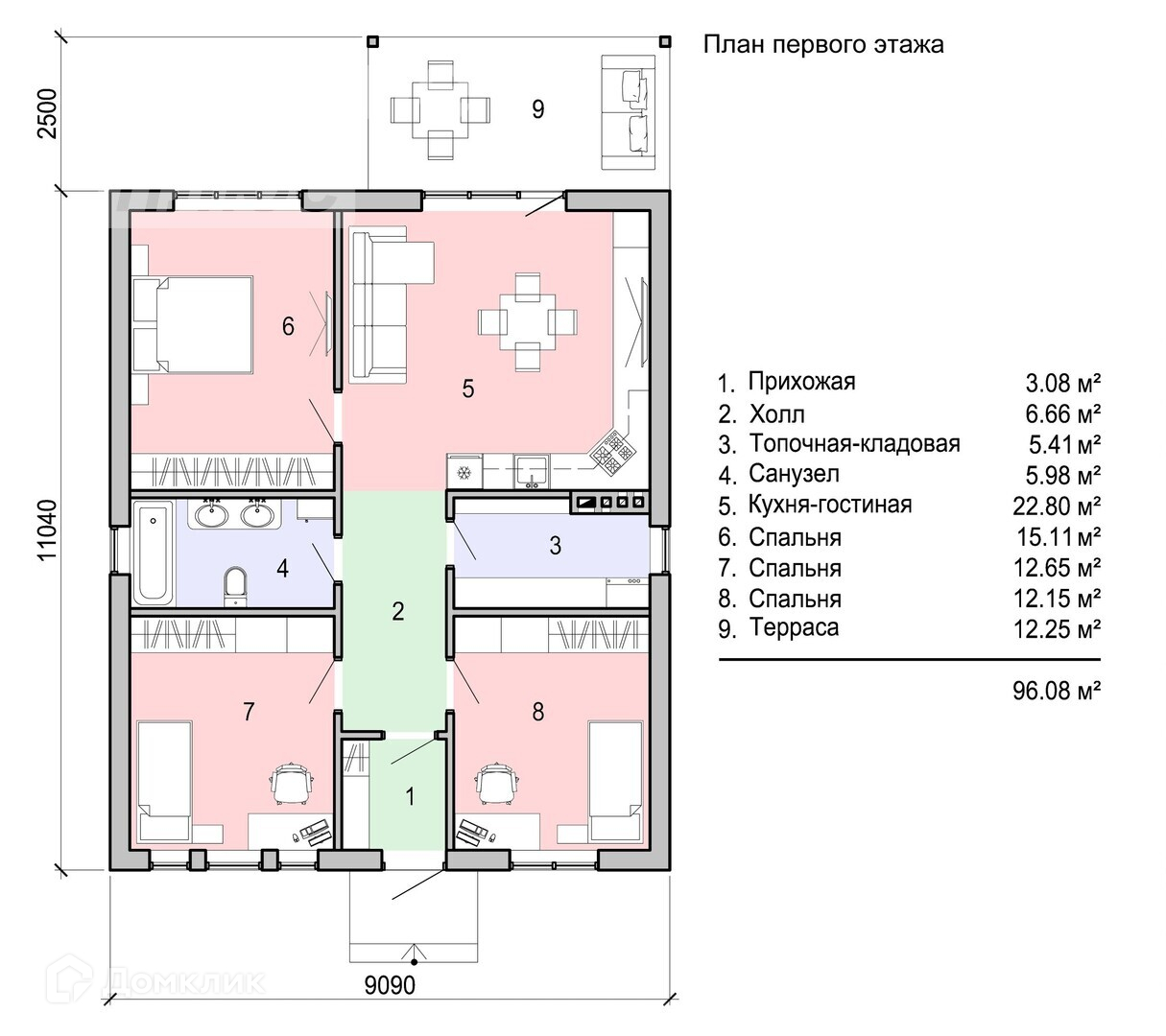 Общая площадь 96 м2