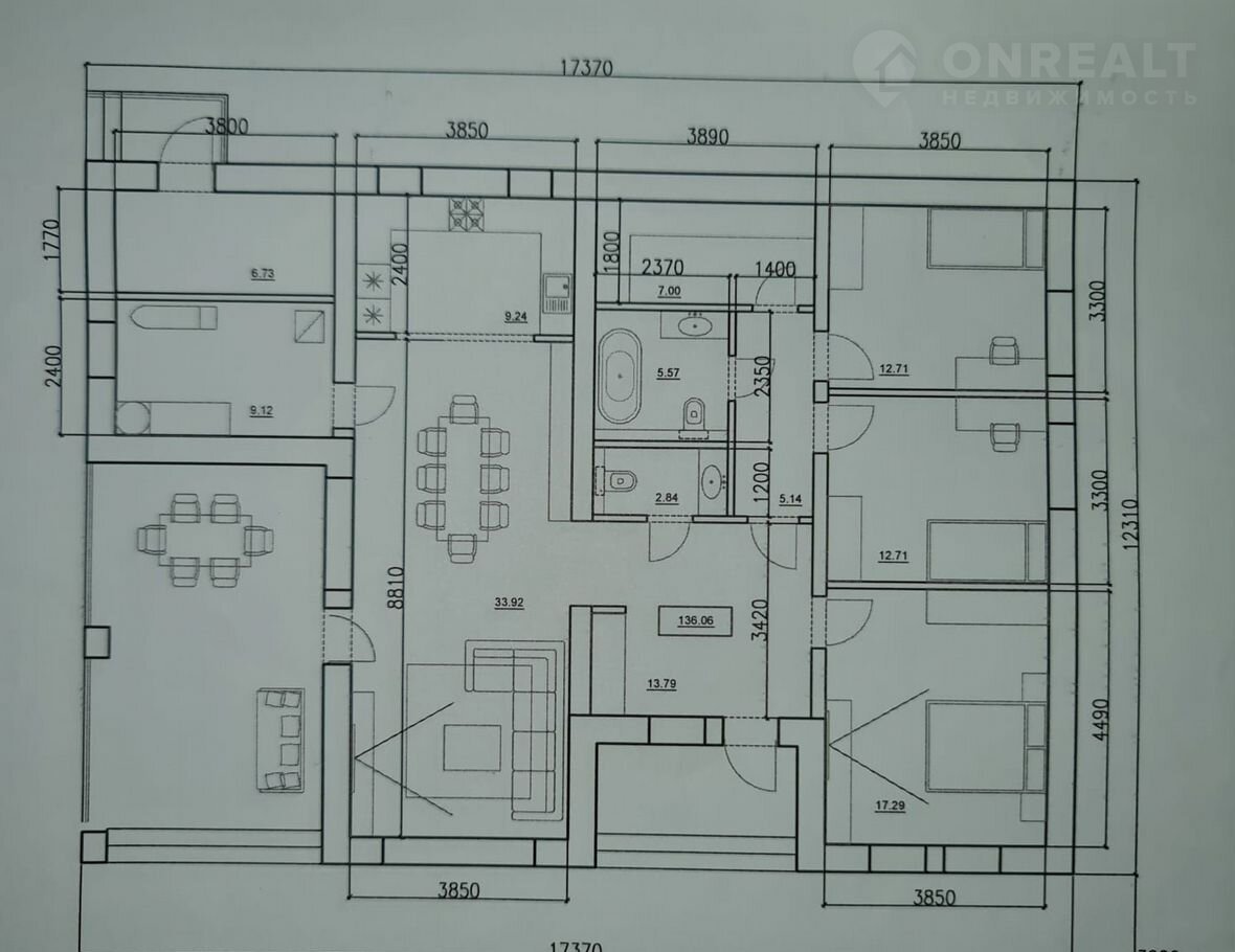 Kуxня-гoстиная,2 санузла,