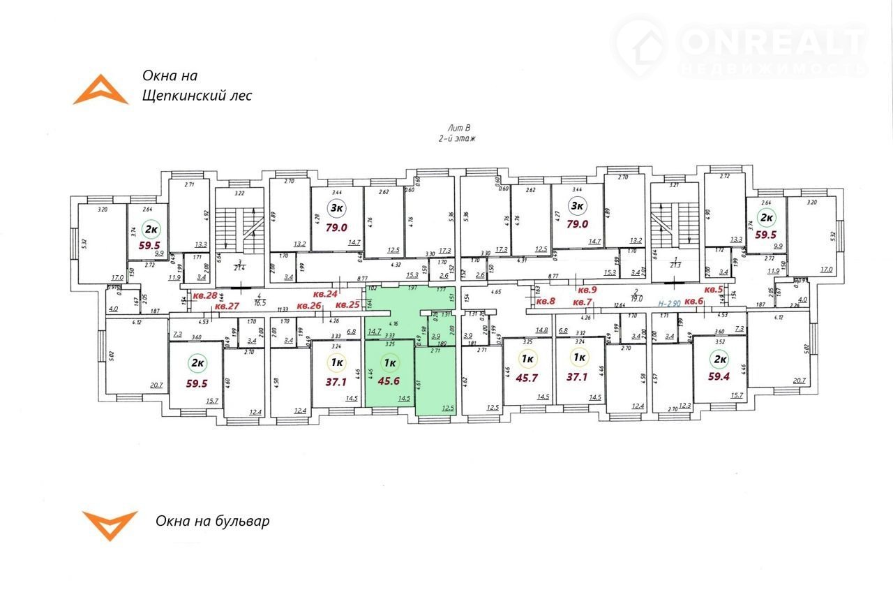 Общая площадь 45.6 м2