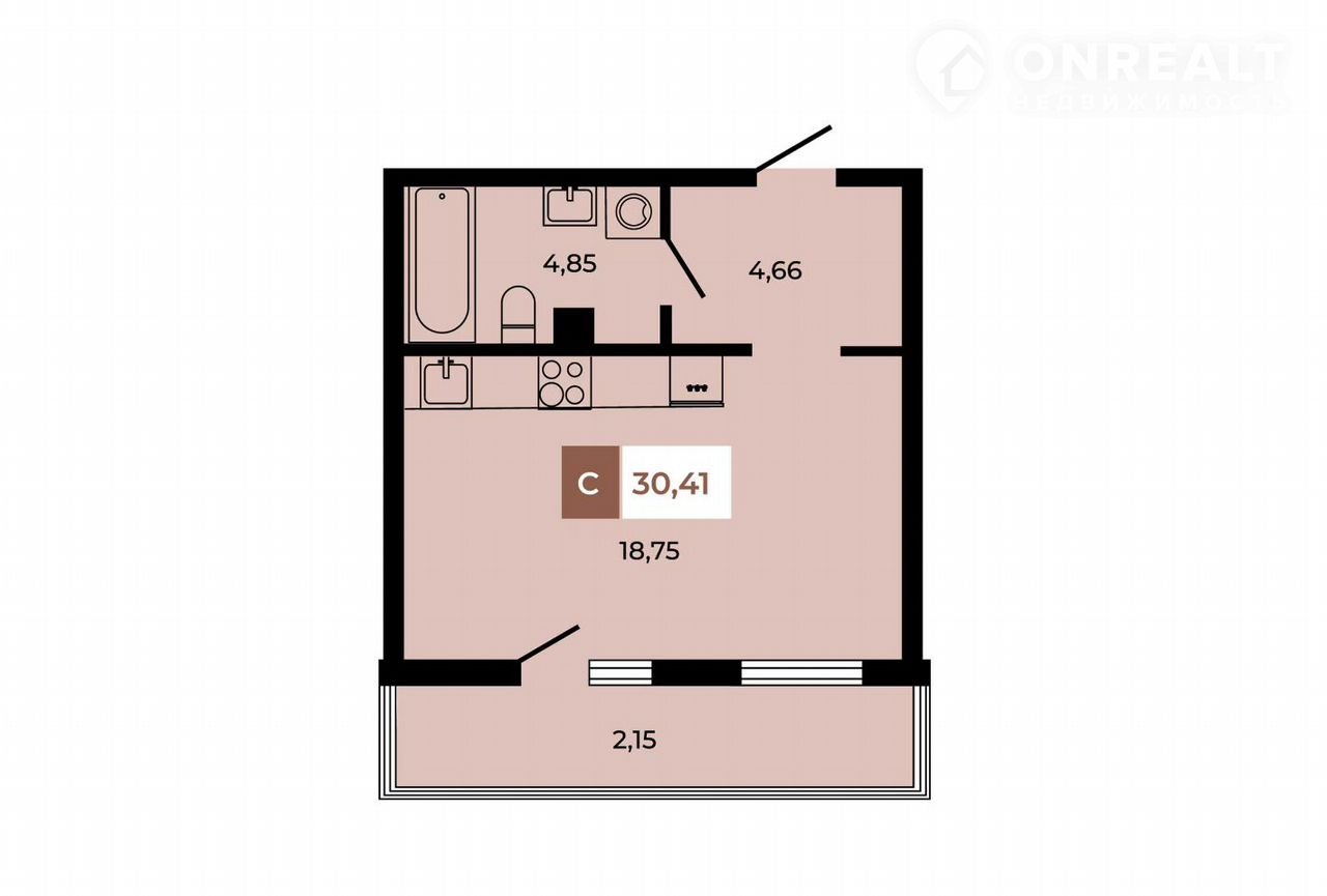 Cтудия, 30.41 м²