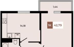 1-комнатная квартира, 43 м2, этаж 5 / 8, на продажу в поселке Темерницком
