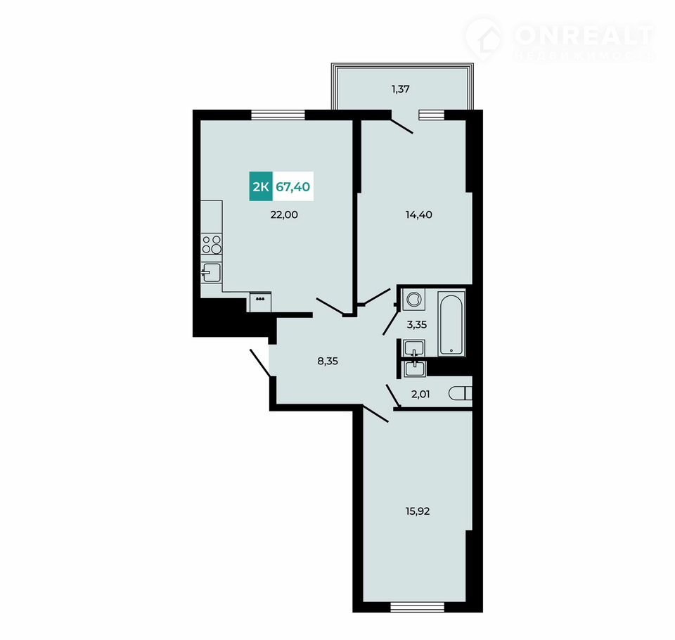 Общая площадь 67.4 м2