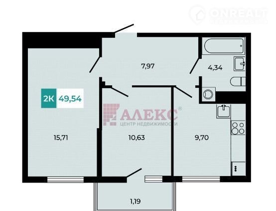 Общая площадь 49.5 м2