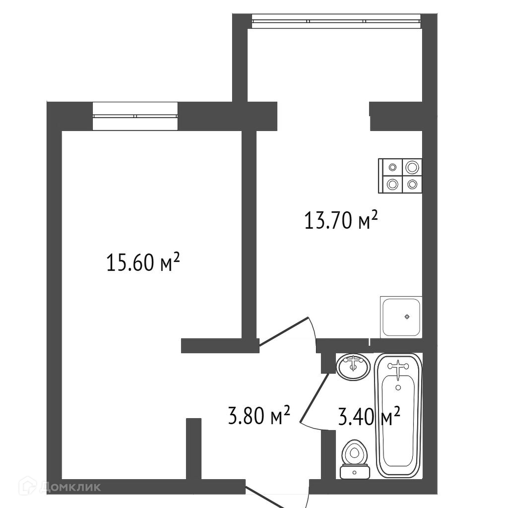 Общая площадь 36.5 м2
