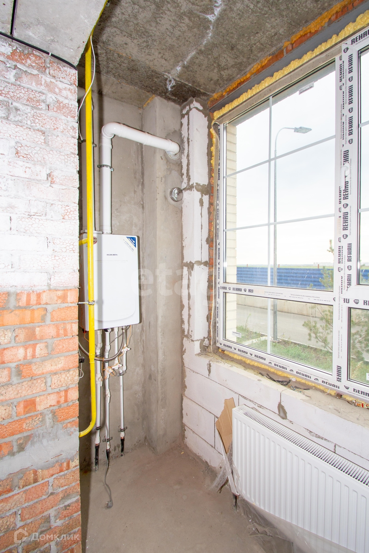 Квартира с индивидуальным отоплением, горячая вода от двухконтурного газового котла, панорамные окна, закрытая охраняемая территория. Дом четырёхэтажный, кирпичный, летом довольно прохладно даже без кондиционера, а зимой тепло. Квартира с черновой отделкой, но уже залита стяжка и сделана разводка электрики.