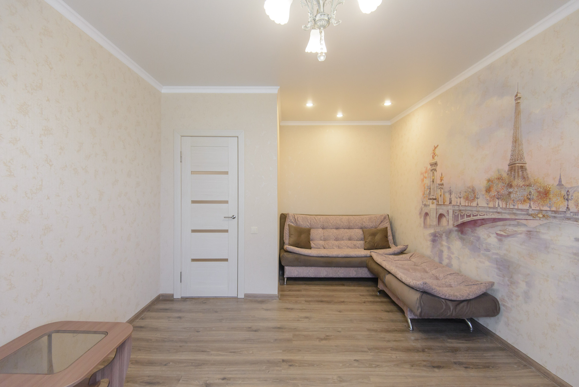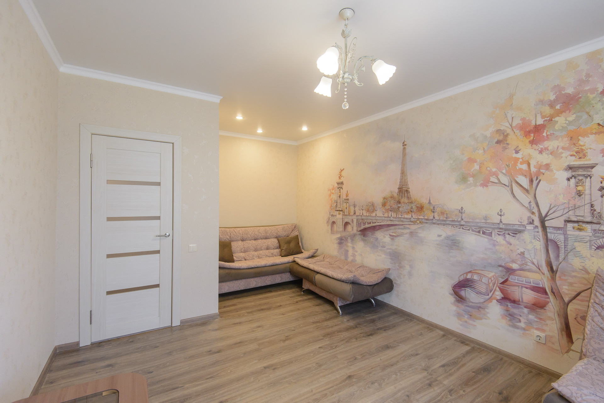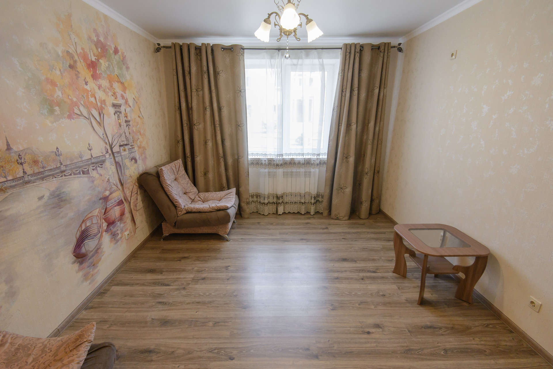 Выполнен современный ремонт, теплый пол по квартире, ламинат, свой котел.