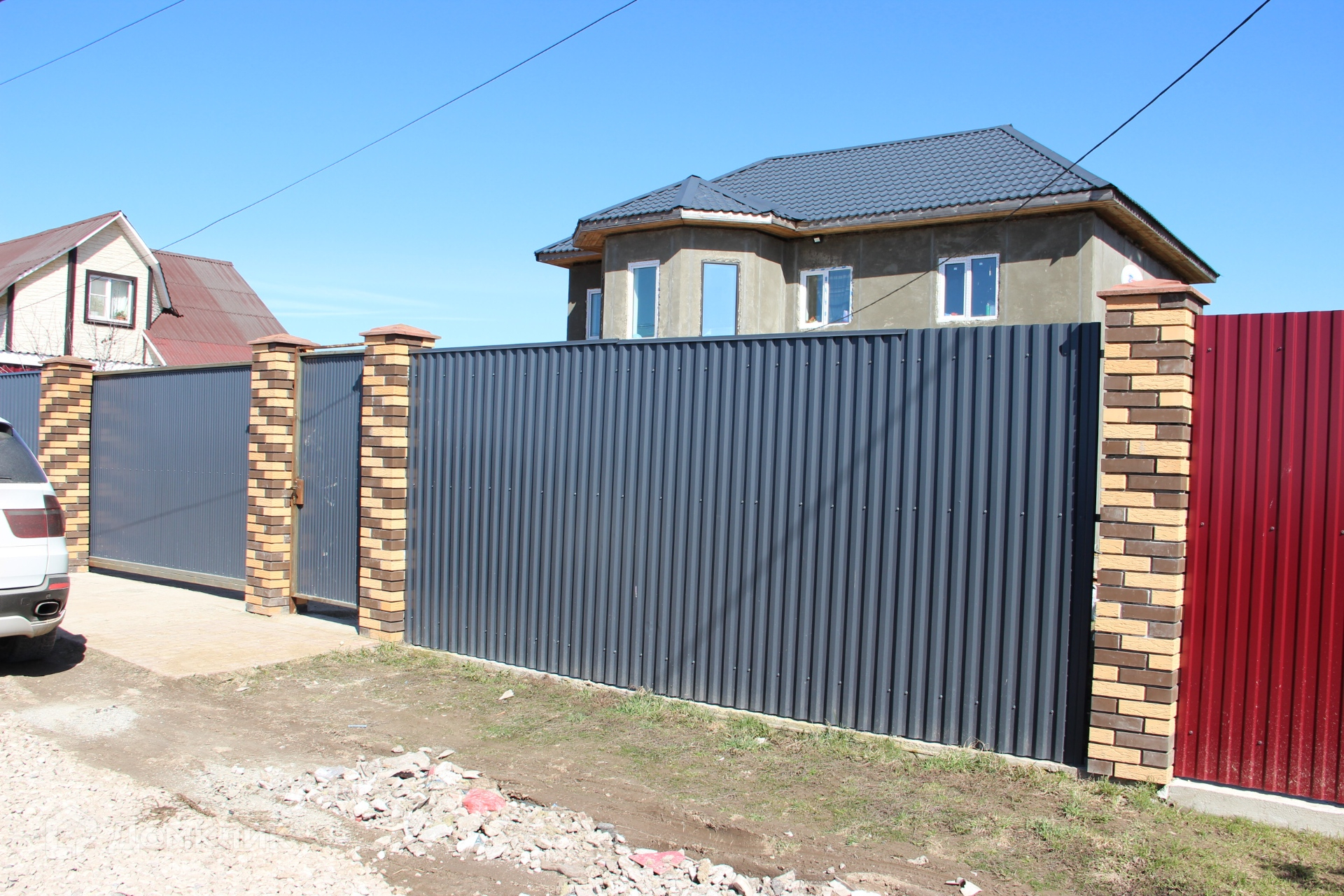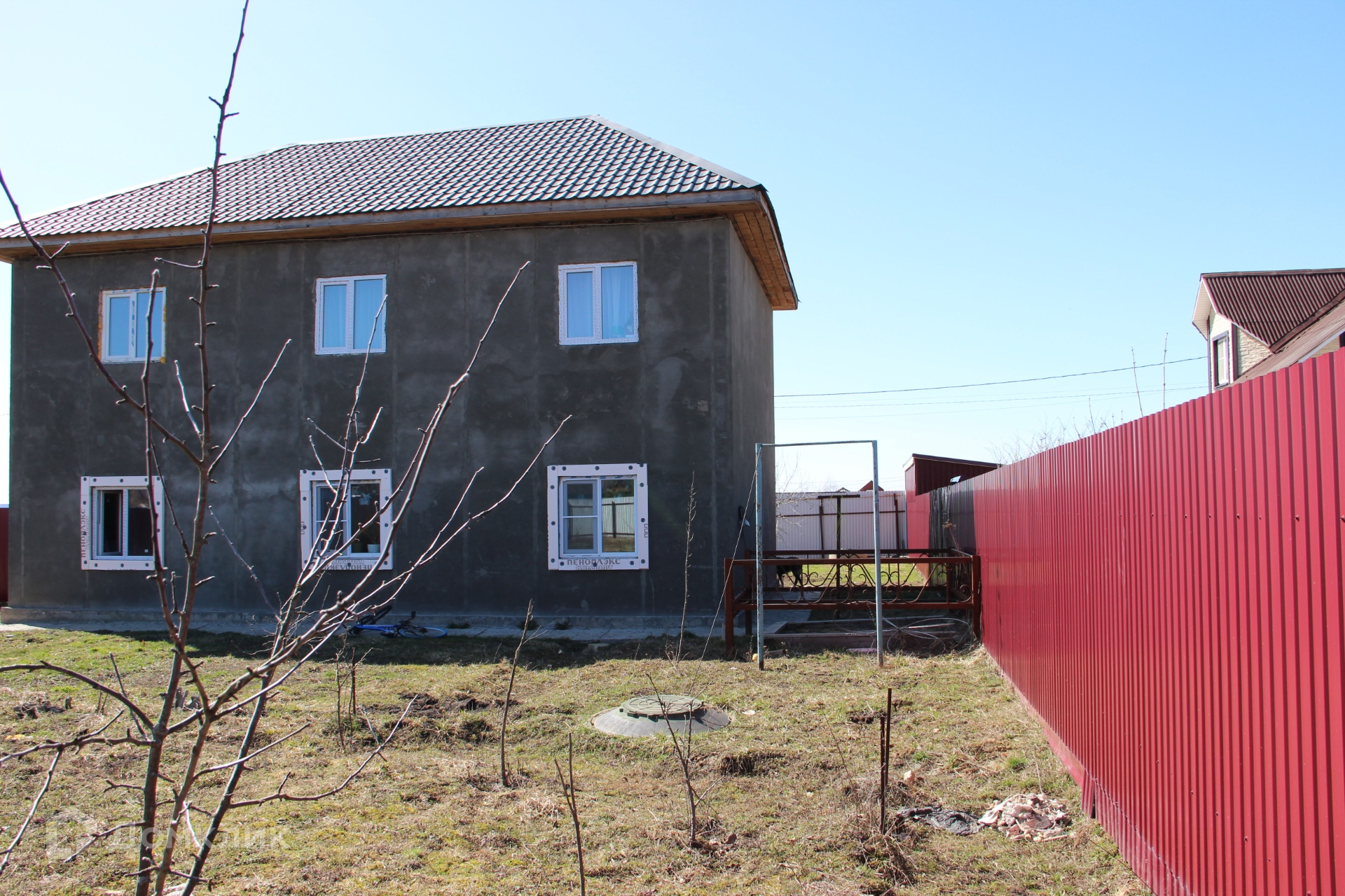 Дом построен на армированном ленточно-свайном фундаменте марки М-350, стены газоблок, кровля металлочерепица, внешние стены штукатурка, окна ПВХ трёх камерные.
