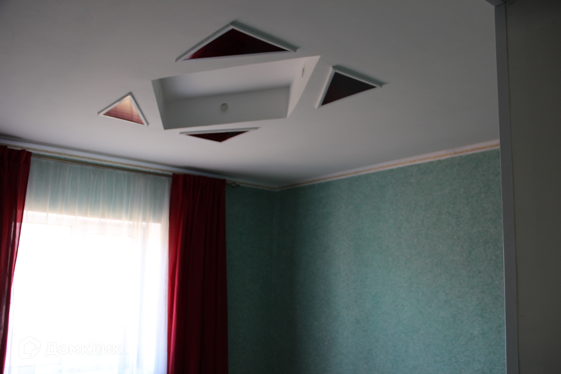 Гостиная: пол - плитка, стены жидкие обои, потолок натяжной.