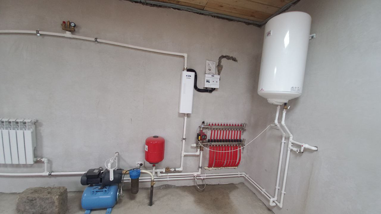 — отопление - электрокотел, теплые полы по всему дому, (не нужно возиться с углем и золой), также предусмотрена возможность установки твердотопливного котла;
