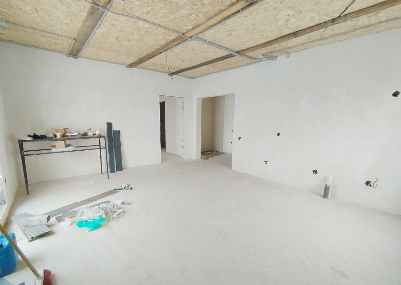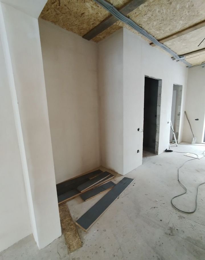 Предчистовая отделка: несущие стены оштукатурены ЦПС и покрыты ротгипсом на 2 раза, также перегородки, подходит под оклейку обоями; потолок подшит влагостойким оsb, выполнена бетонная стяжка.‍