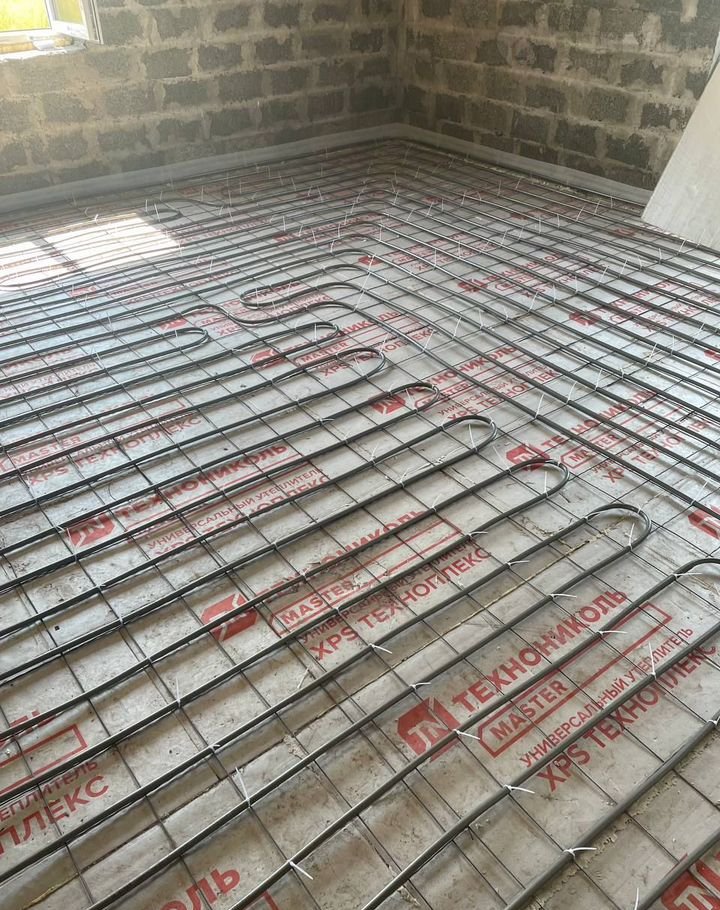 Отопление теплый водяной пол теплоноситель этиленгликоль, источником питания является электрокотел на 12 кВт.‍