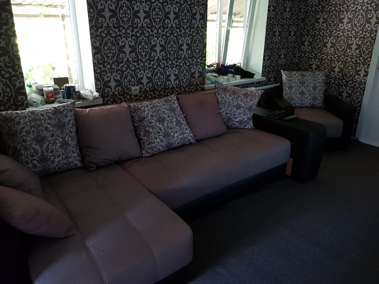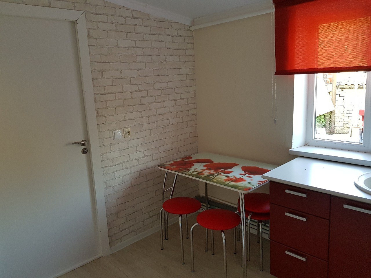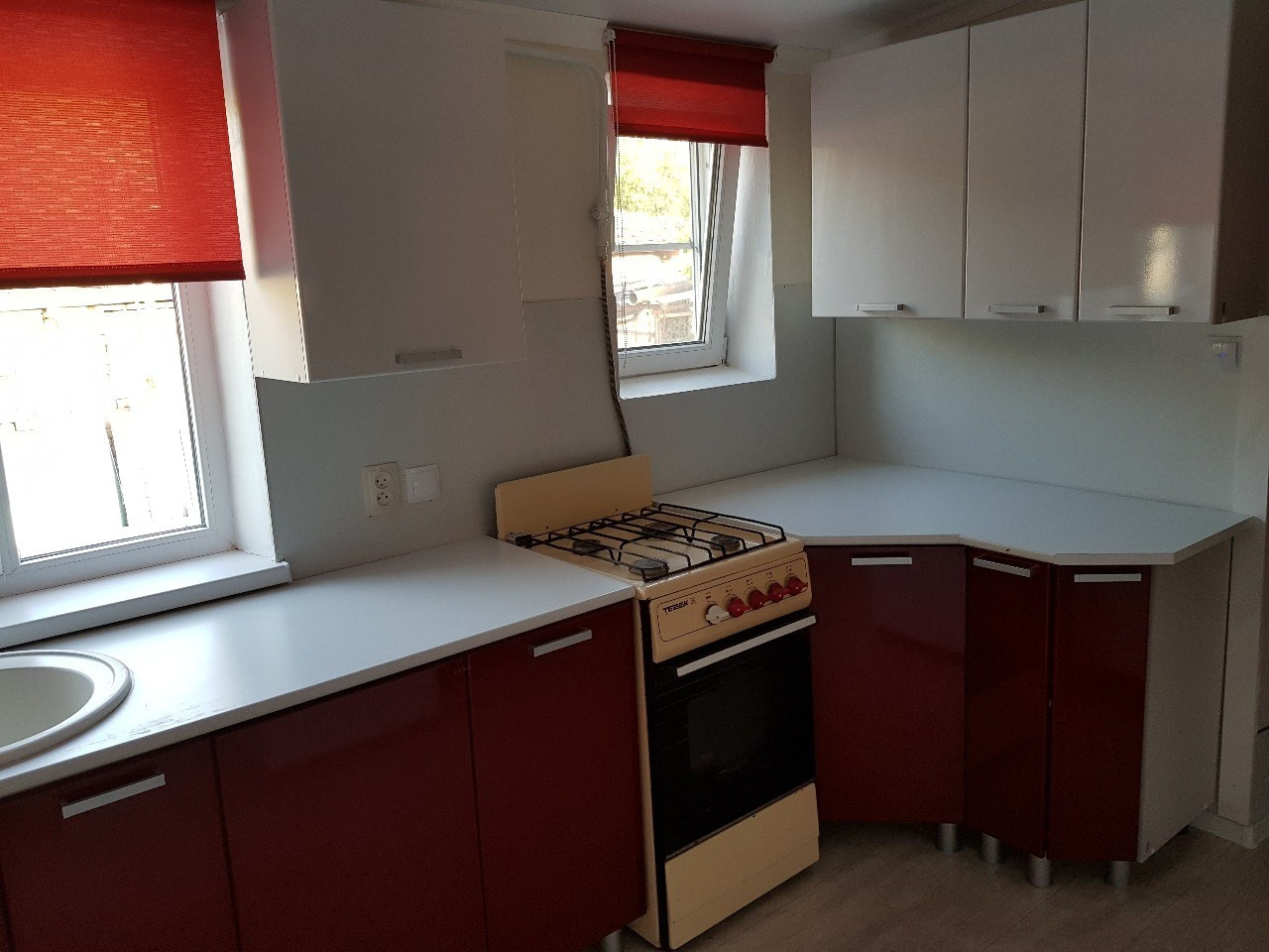 На кухне рулонные шторы, на все комнаты и кухню была куплена новая мебель, никакой старой мебели в доме не осталось. Во всех 4х комнатах поклеены обои, висят новые люстры и занавески, постелены новые напольные покрытия - ковролин.