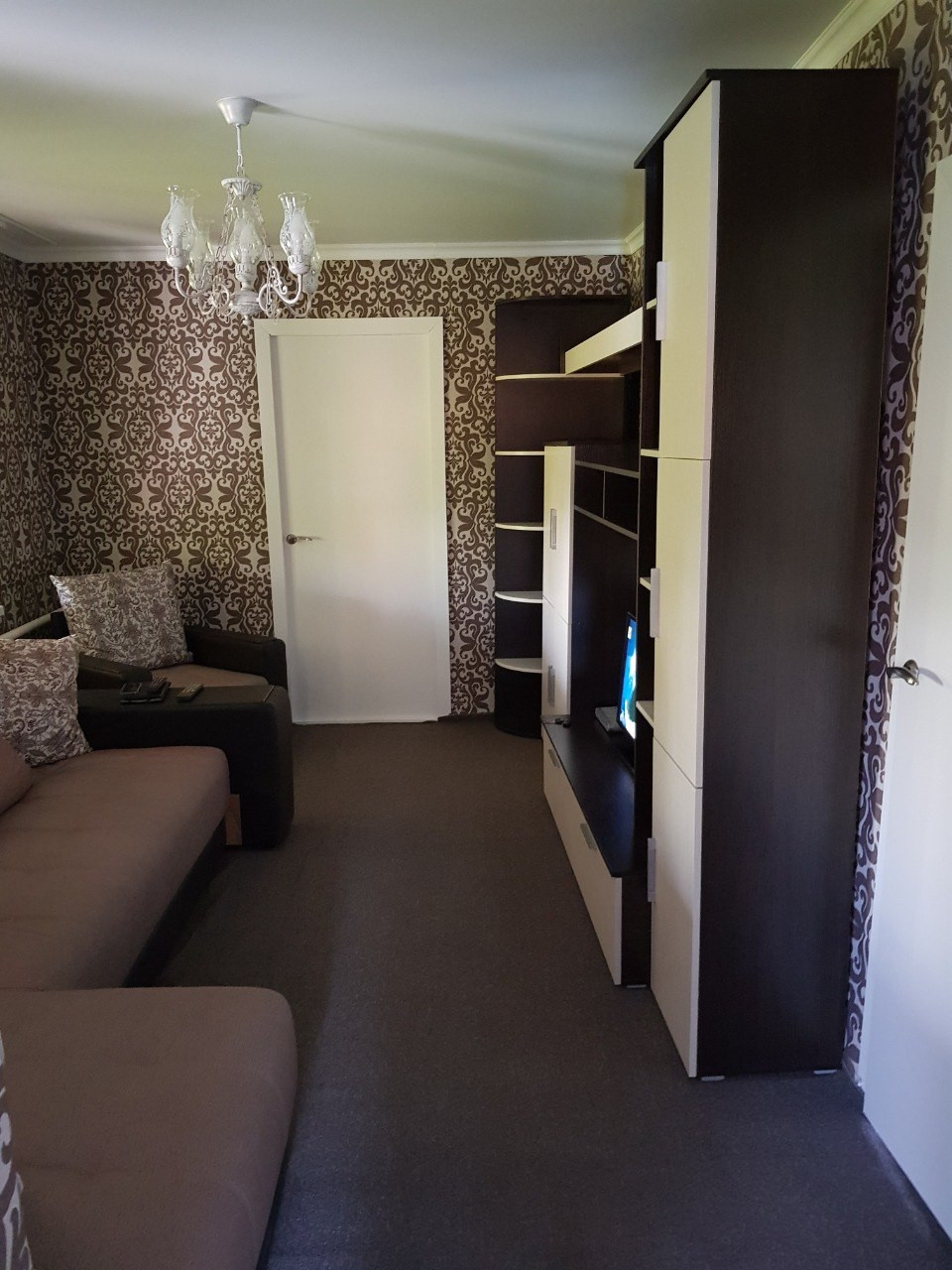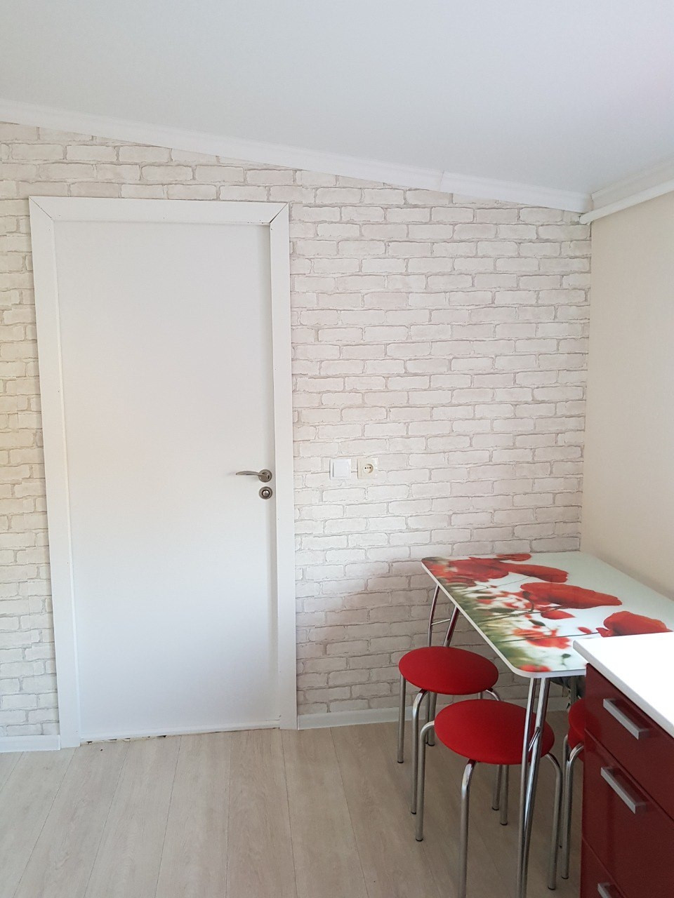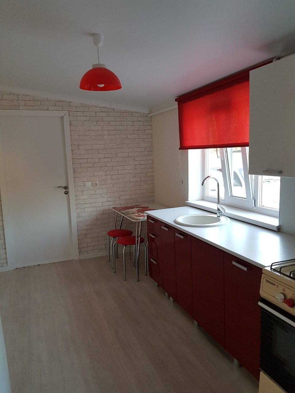 На кухне рулонные шторы, на все комнаты и кухню была куплена новая мебель, никакой старой мебели в доме не осталось. Во всех 4х комнатах поклеены обои, висят новые люстры и занавески, постелены новые напольные покрытия - ковролин.