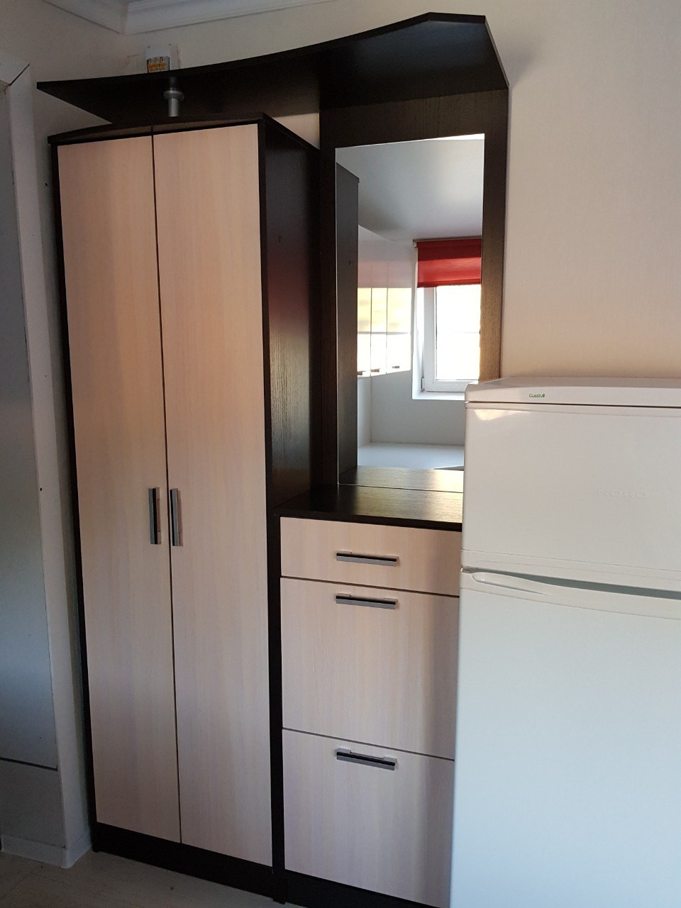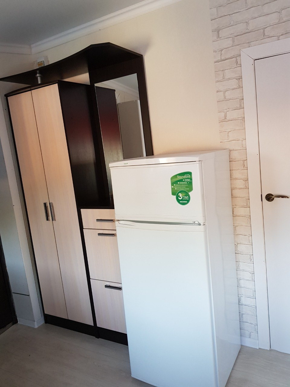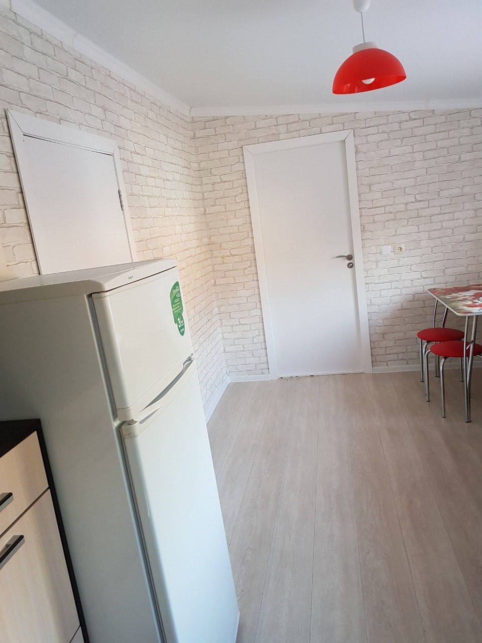 На кухне светодиодный светильник с пультом управления, установлен кронштейн для телевизора, подведён антенный кабель, новый линолеум, новая кухонная мебель, с возможностью установки посудомоечной машины, обеденная зона со столом и четырьмя стульями, при входе расположен компактный шкаф-прихожая с зеркалом и отделениями для хранения обуви и верхней одежды. Имеется холодильник, стиральная машина, газовая плита, в зале установлена сплит система, подключен новый газовый котел на отопление и газовая колонка.