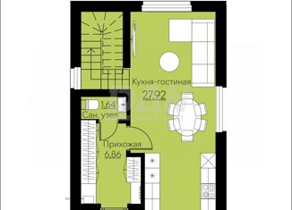 Код объекта: 1151349. В продаже готовый Двухэтажный Дом, общая площадь 80,48 кв.м. Дом продается без внутренней отделки. На первом этаже располагается просторная прихожая, большая кухня-гостиная, площадью 27,92 кв.м. Санузел. На втором этаже две спальные комнаты: 13,2 кв.м. и 16.34 кв.м. и ванная комната площадью 4,15 квм. Территория ЖК находитс... |