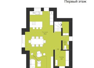 Одноэтажный коттедж, общей площадью 94 м2. Включает в себя: — Гостиная с кухней и столовой – 29,4 м2; — Две спальни – 15,2 м2, 18 м2; — Два санузла; — Прихожая – 5,6 м2; — Терраса – 16,3 м2. Возможна продажа по льготной ипотеке со ставкой 7,7% Семейная ипотека 5.7%, IT ипотеке со ставкой 4,7% Сельская ипотека со ставкой 3%. |