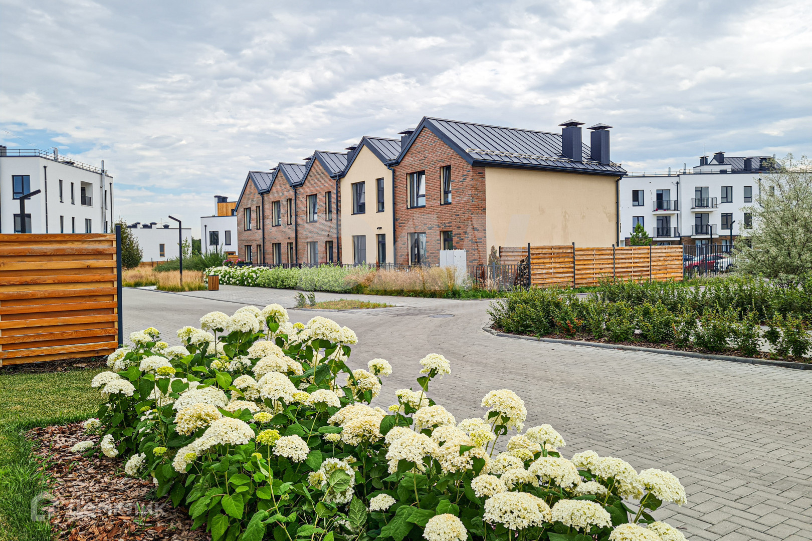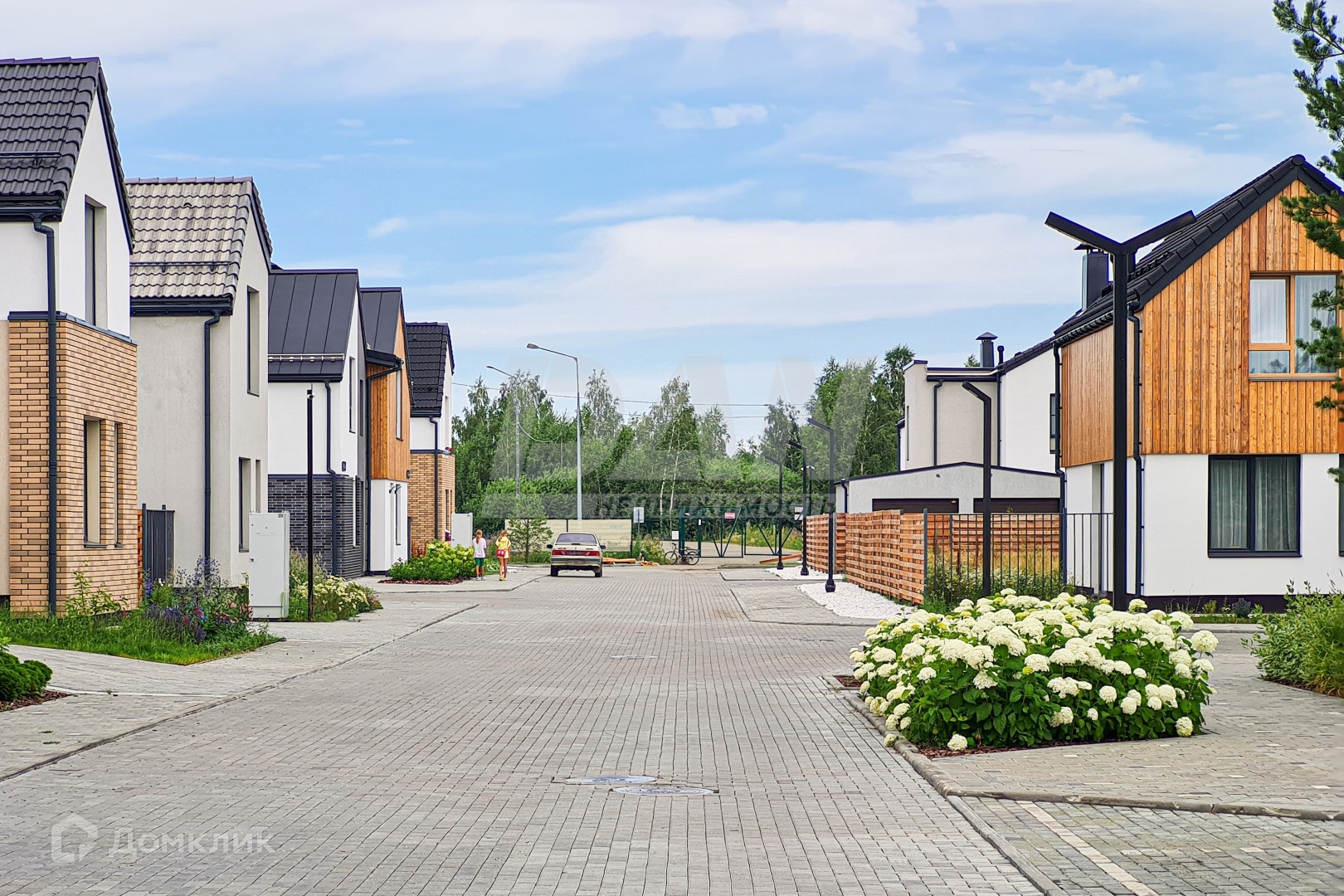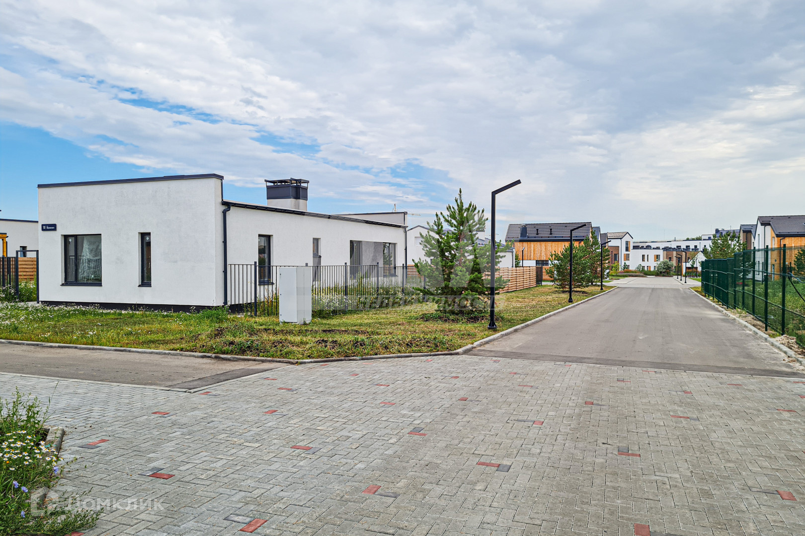 В домах предусмотрены терраса, парковочное место, гараж, земельный участок. Подземным способом проведены все коммуникации: газ, водоснабжение, водоотведение и электричество.