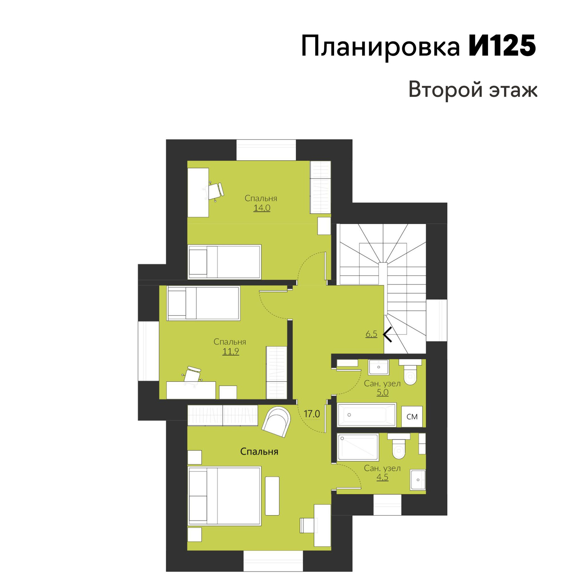 Две спальни - 14,8 м2, 17 м2;