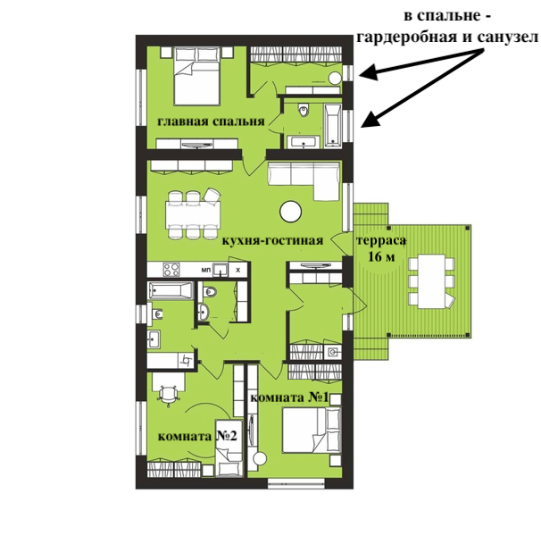 Эргономичная планировка - кухня-гостиная (30 метров) и три отдельные спальни. Вы обязательно оцените собственный санузел и гардеробную в главной спальне, наличие вспомогательных помещений, и конечно террасу, на которой с удовольствием будете проводить время и наблюдать за красочными закатами.
